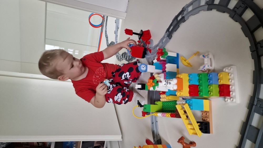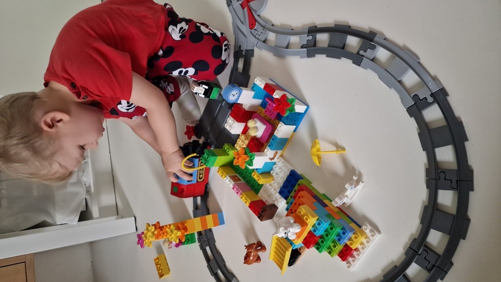 Gustav mängib rongimängu iga päev ja on juba väga osav rongitee ehitaja.