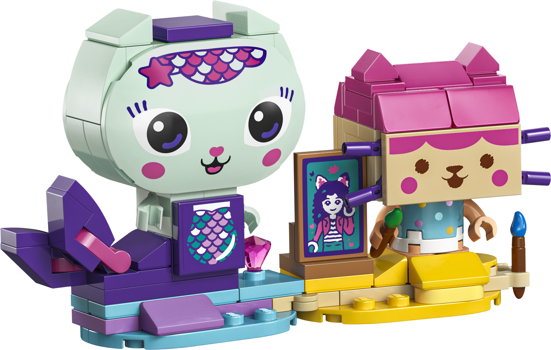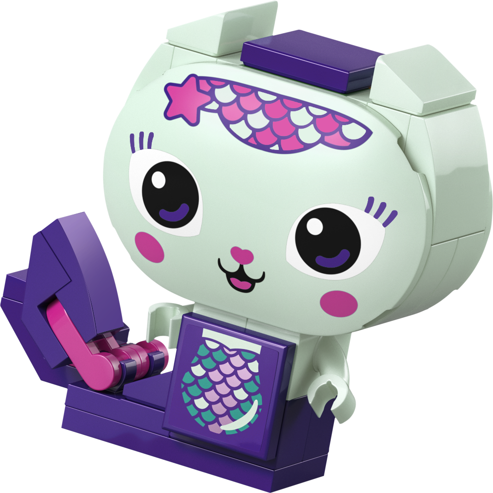 Komplektis on ehitamiseks kuus figuuri, millest igaühel on telesarja tarvikud. MerCatil on teemant, Baby Boxil on Gabby maal, Kitty Fairyl on kastekann, Pandy Pawsil on nukumaja, Cakeyl on kook ja Daniel James ‘DJ’ Catnipil on klaver. Igal alusel on kaks eemaldatavat figuuri. See armas kingitus tüdrukutele ja poistele on suurepärane kingiidee Gabby nukumaja fännidele. Lapsed saavad ehitada enesekindlalt rakenduse LEGO Builder abil. See võimaldab neil suumida, pöörata 3D-s ja jälgida oma edenemist lihtsalt järgitavate digitaalsete juhiste abil. Komplektis on 324 osa.