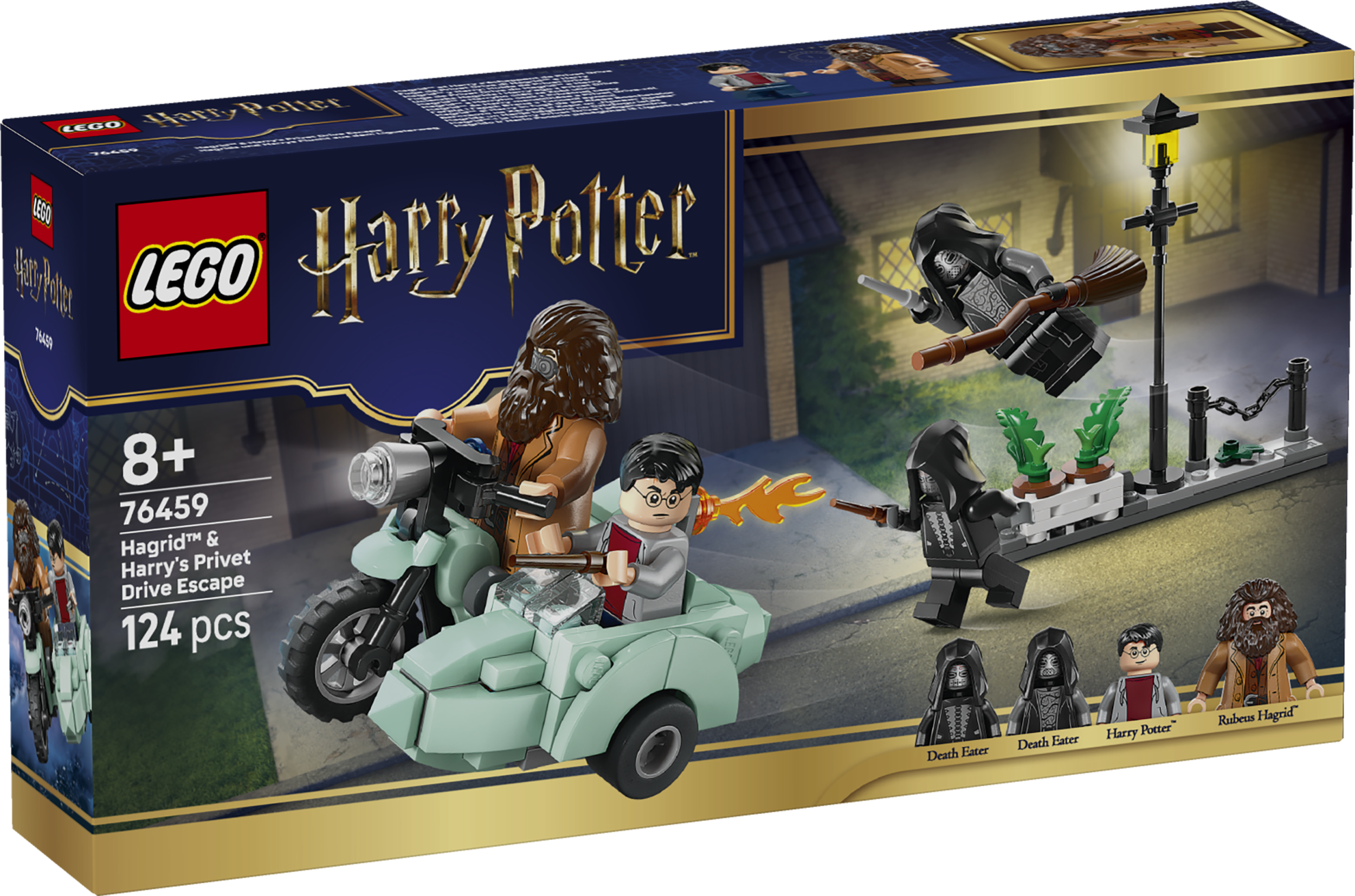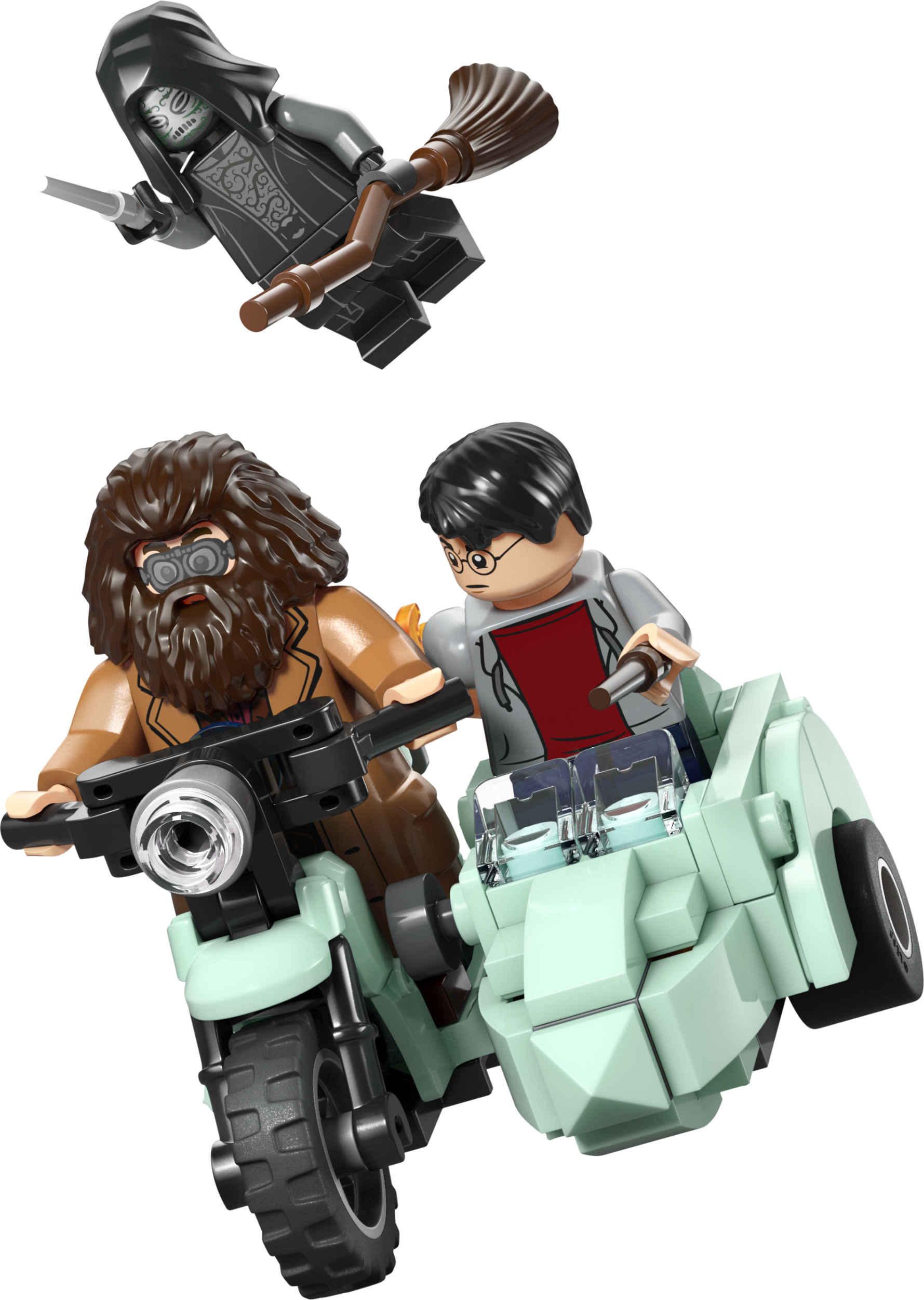- 4 LEGO® HARRY POTTERI MINIFIGUURI – mängi seikluslugu Harry Potteri, Rubeus Hagrid™-i (koos mootorrattaprillidega) ja kahe surmasööjaga
