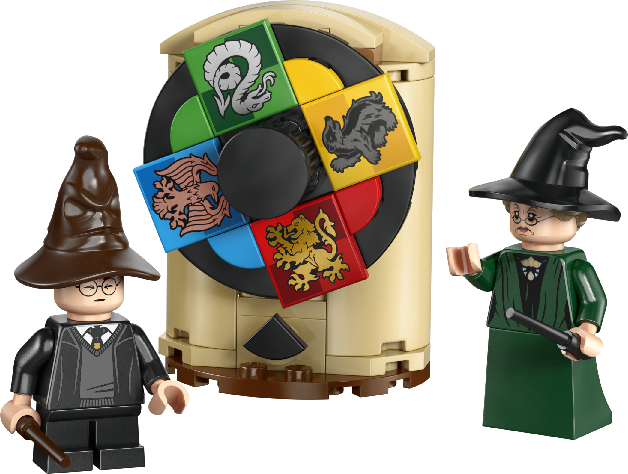 - Neli LEGO® HARRY POTTER™-I MINIFIGUURI – mängi Sõõlamiskübara tseremooniat professor McGonagall™-i, Harry Potteri, Hermione Granger™-i ja Draco Malfoy™-iga, kellel igaühel on võlukepitarvik