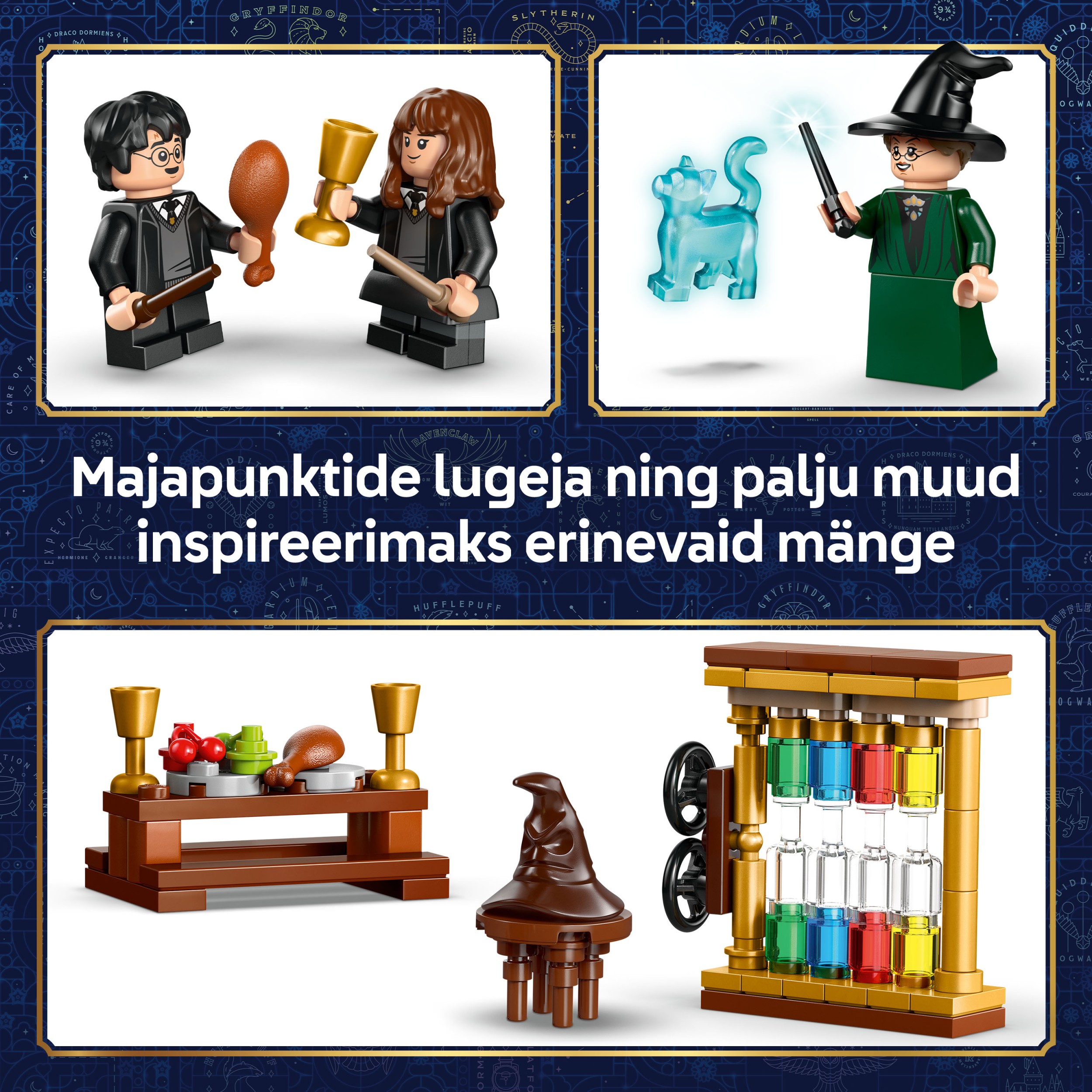 - LEGO® Harry Potter™-i kogutav mänguasi – see seiklusmänguasi on osa moodulkomplektide kollektsioonist (müügil eraldi), et luua kõigi aegade üksikasjalikem LEGO klotsidest Sigatüüka lossi stseen