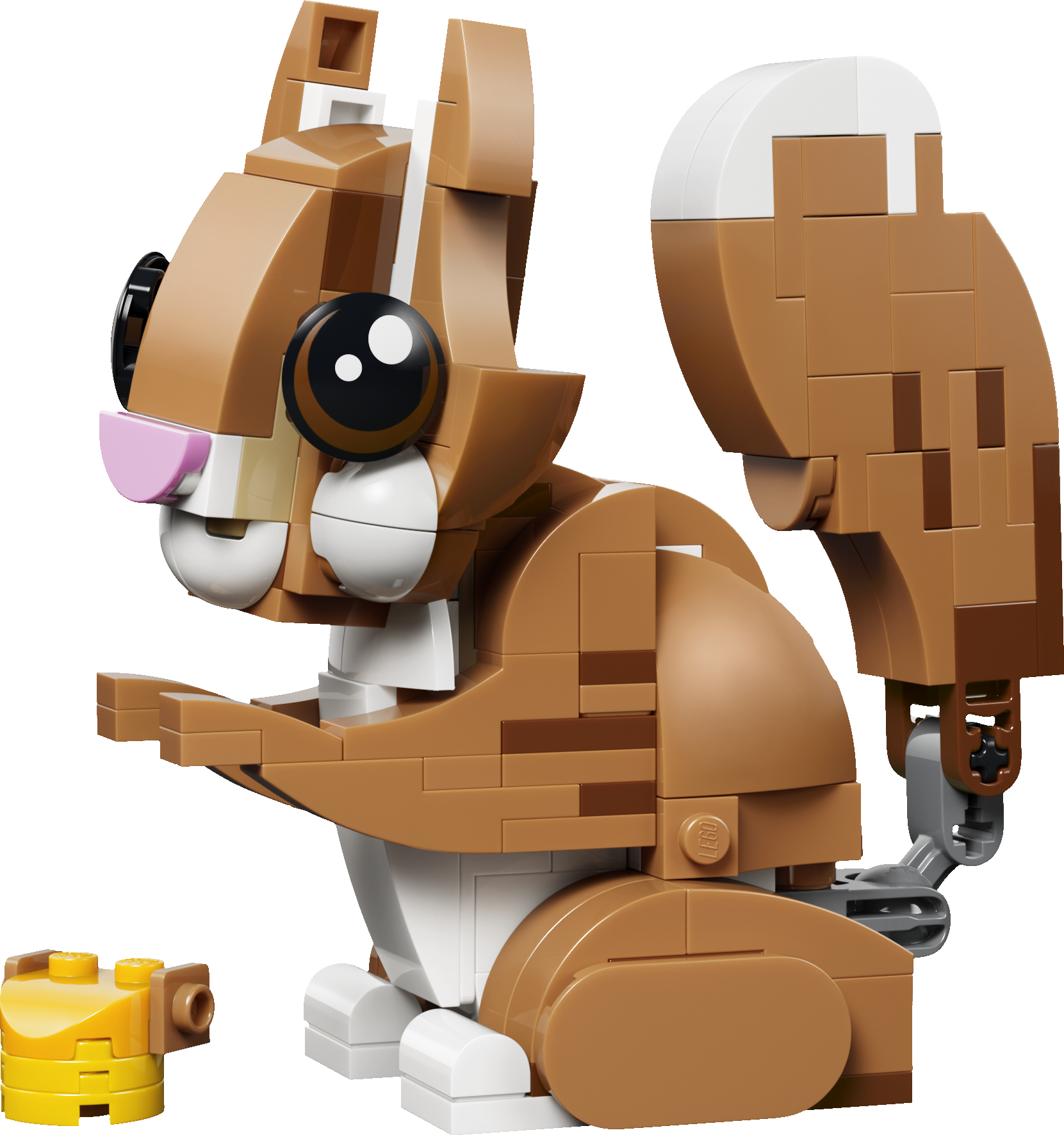 - LIIGUTATAVAD LEGO® LOOMAD – Mängukoeral on liigutatav pea, kõrvad, jalad, saba, kulmud ja suu, oravamudelil on liigutatav saba ja pea ning pardimudelil on liigutatav pea