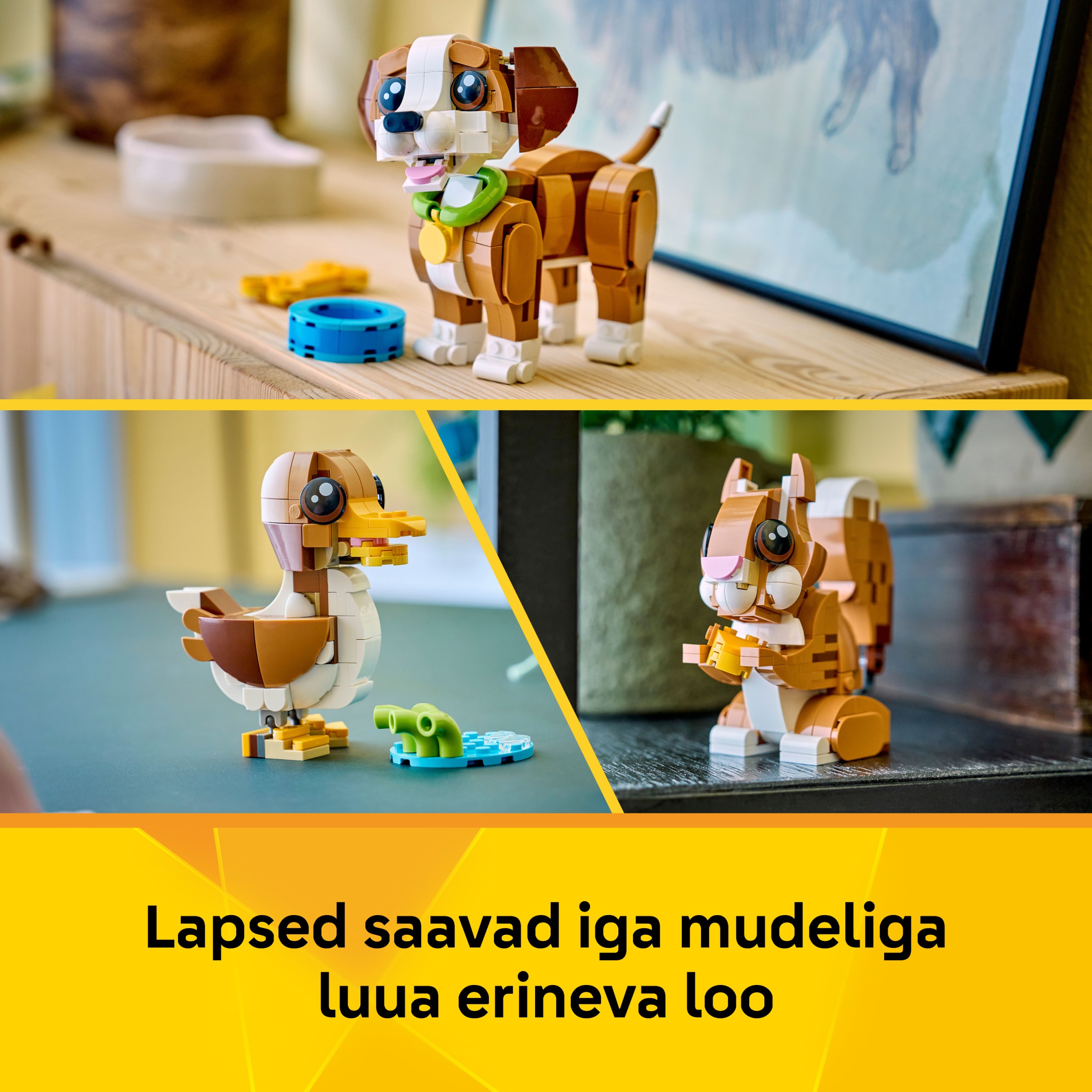 - Kolm ühes loomamänguasi - LEGO® Creator kolm ühes Armsad loomad: mänguhimulise kutsika ehitusmänguasi (31382) võimaldab alates 8-aastastel tüdrukutel, poistel ja lastel ehitada ja ümber ehitada 3 loomafiguuri samade klotsidega
