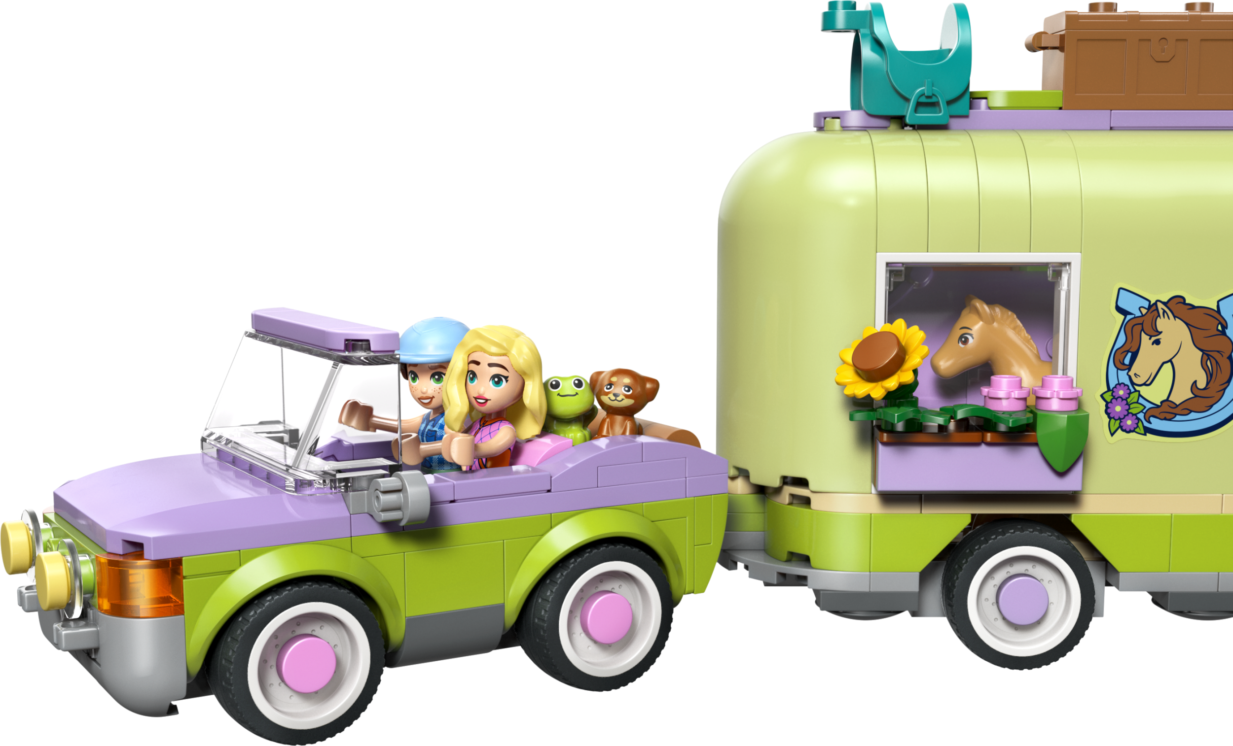 Lase 7-aastastel ja vanematel lastel nautida tundide kaupa loomade eest hoolitsemise rollimängu LEGO® Friends hobuse ja varsa haagisega (42695). See hobusesõprade komplekt sisaldab 2 mininukku ning hobuse, varsa, kutsika ja konna figuure. Tutvu loomade eest hoolitsemisega, kasutades üksikasjalikke tarvikuid hobuste hooldamiseks, nende transportimiseks haagises ja hüppamise harjutamiseks.