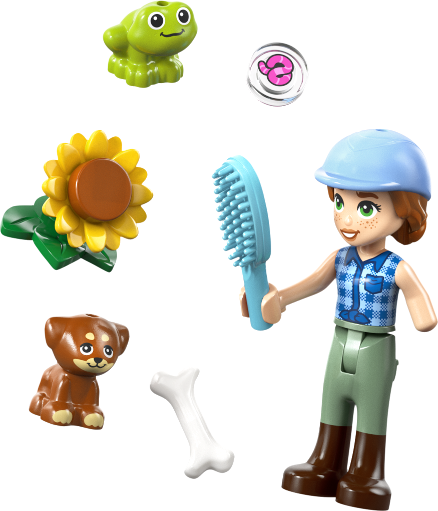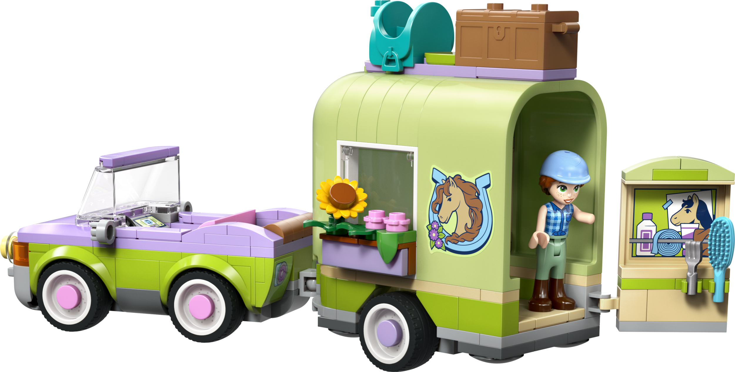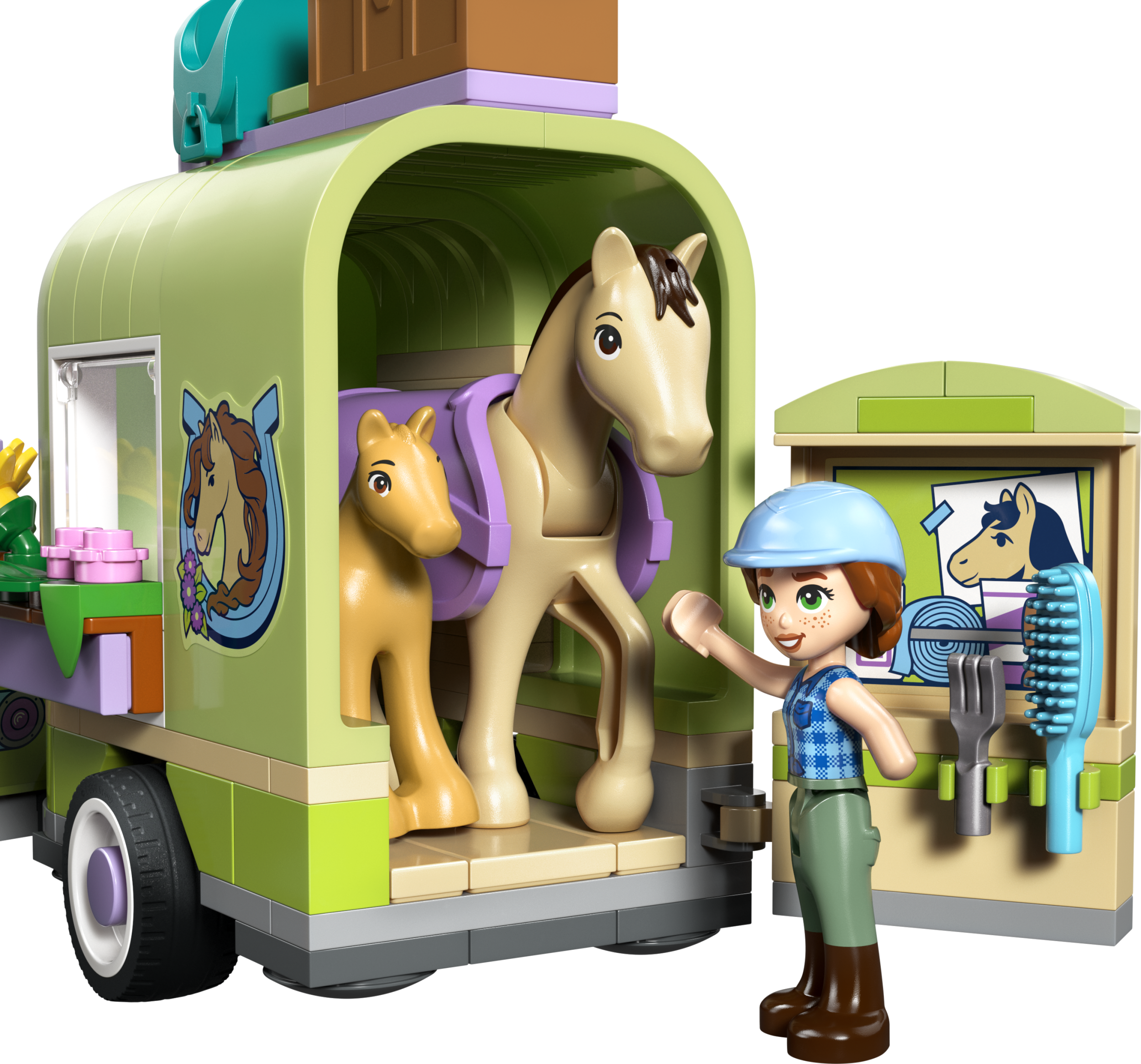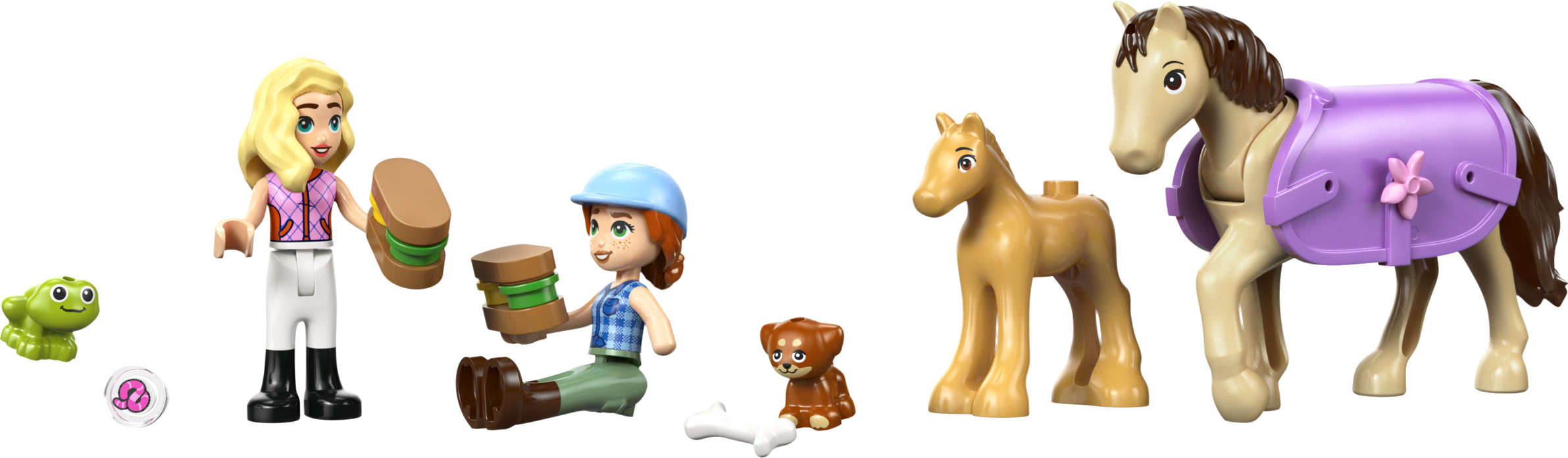 - PALJU TARVIKUID – Selle LEGO® Friends komplekti tarvikute hulka kuuluvad ülehüppamiseks mõeldud aed, sadul, võileivad, korv, hari, hobuste jaoks porgandid ja 2 väikest lille hobuste teki kaunistamiseks