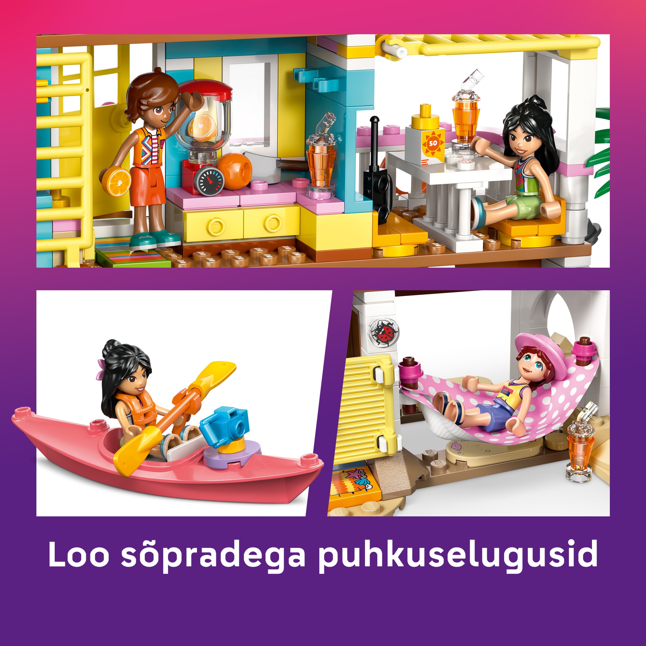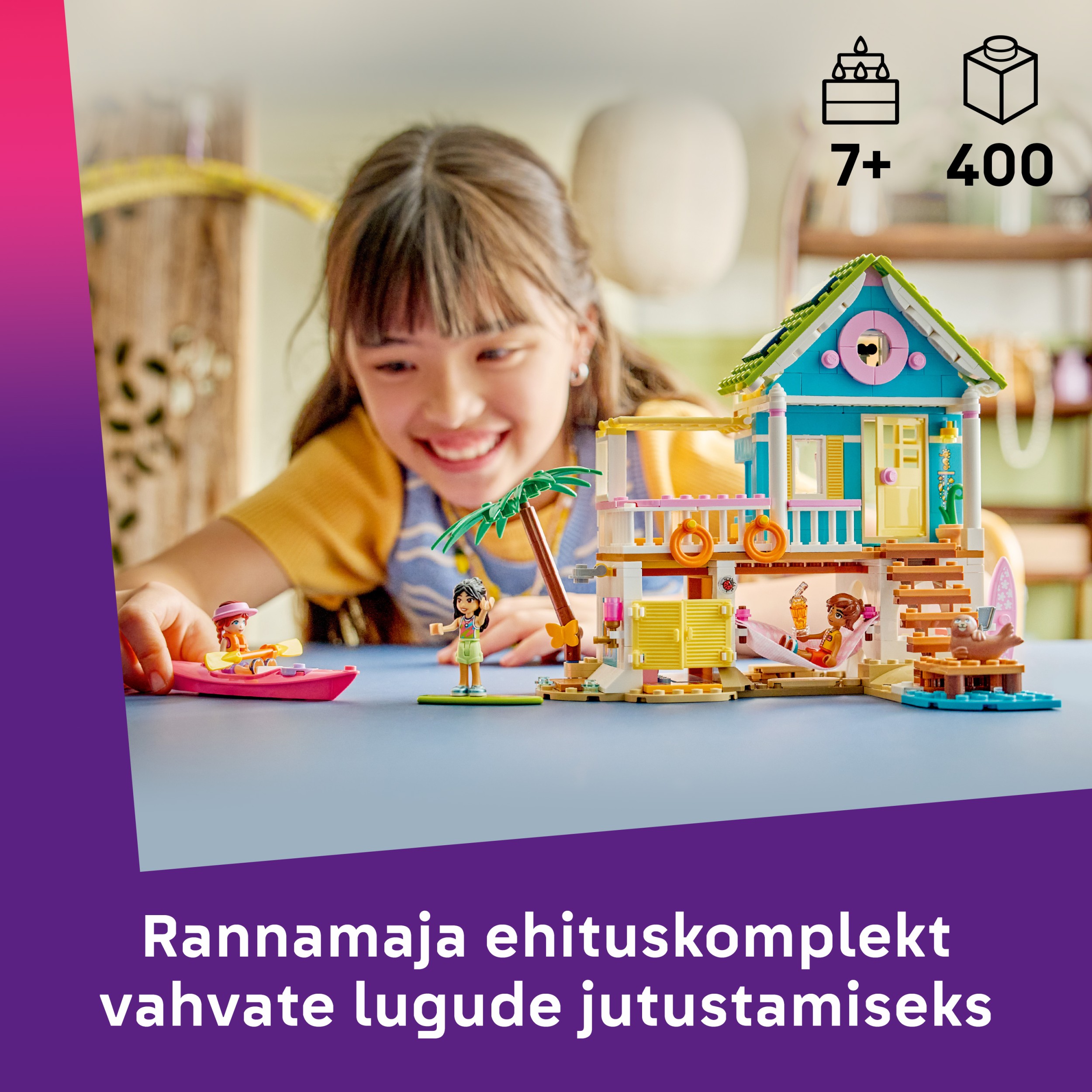 7-aastased ja vanemad tüdrukud ja poisid saavad selle lõbusa mängumajakomplektiga luua omaenda puhkuseseiklusi. LEGO® Friends sarja rannamaja hüljestega (42699) ehituskomplekt sisaldab rannamaja, mis on täis hubaseid detaile. Siin on palju inspiratsiooni loominguliseks mängimiseks, sealhulgas köögis smuutimasin, magamisala 3 voodiga ja armas veranda terrassi ja istumisnurgaga. Lõbutsemine jätkub väljas liival, kus hülged armastavad lõõgastuda. Seal on isegi peidetud aardeid, mida leida!