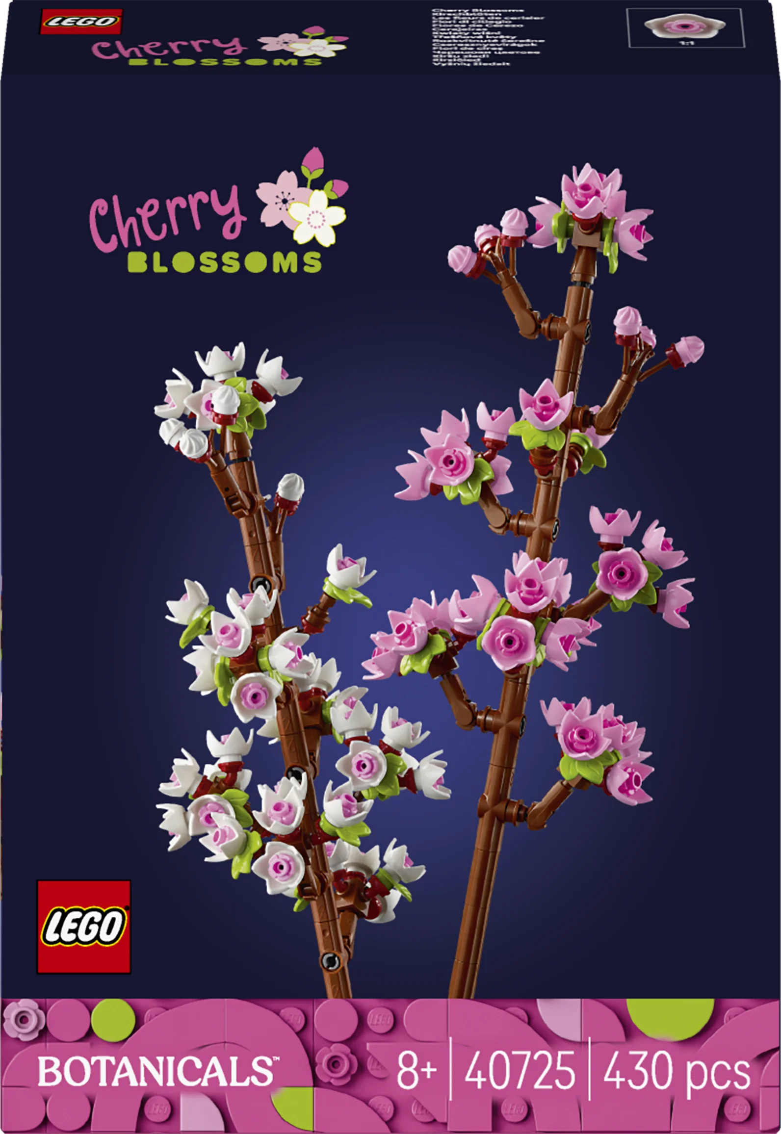 - Kevadvärvid – selles LEGO® komplektis on kaks pastelsete roosade ja valgete pungadega kaetud kirsioksa