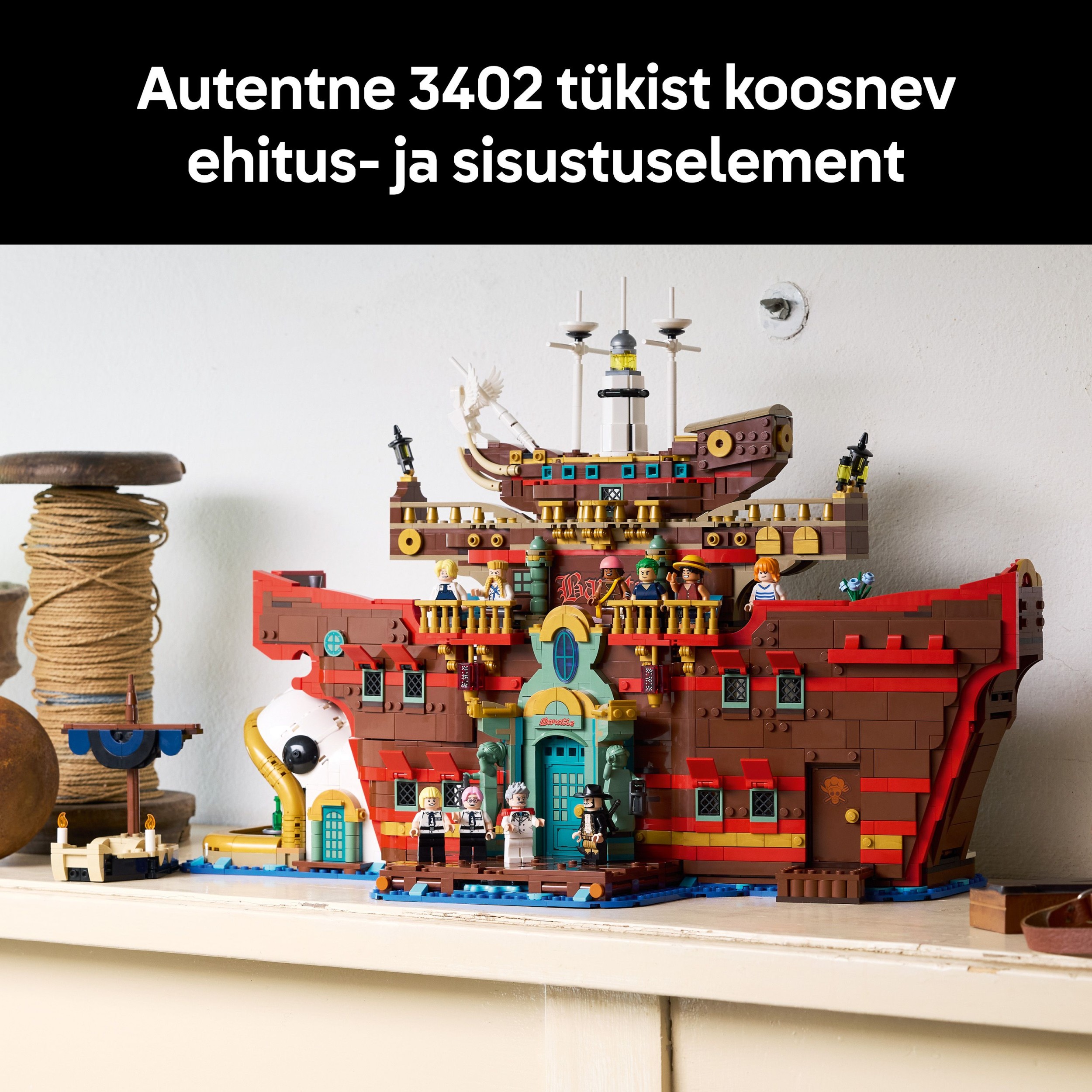 - Ujuva restorani Baratie mudelikomplekt täiskasvanutele – detailne LEGO® versioon kuulsast ONE PIECE'i tegevuskohast on kingitus mangasõpradele, piraadifännidele ning neile, kes armastavad mudelite ehitamist