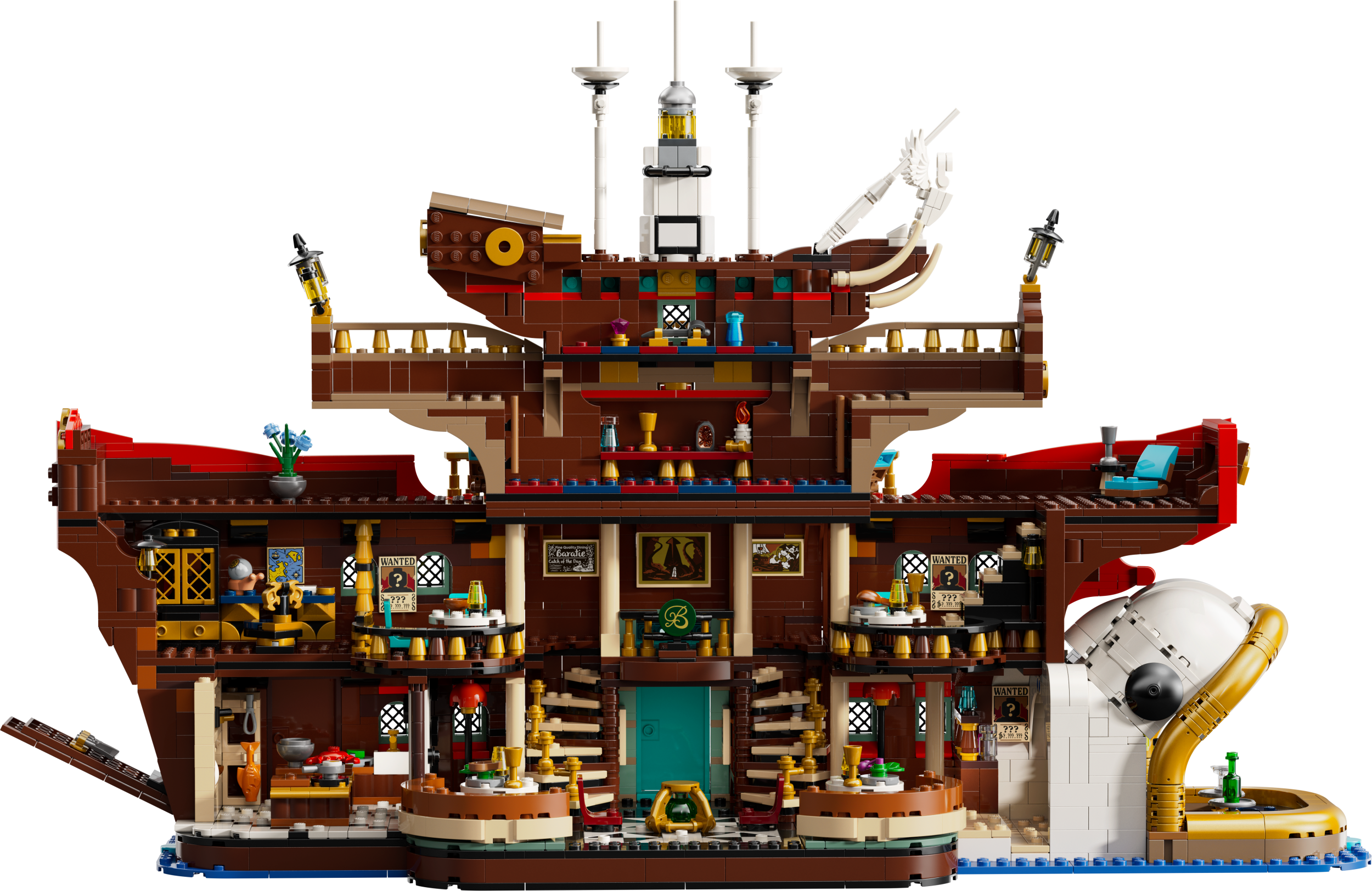 Selle muljetavaldava laevakujulise välekuesemejapan interjööris on palju ligipääsetavaid ruume, sealhulgas köök ja söögituba, Zeffi eluruumid ja aardetuba. Klassikalisi stseene saab taasetendada 10 LEGO minifiguuriga: Luffy, Zoro, Nami, Usopp, Sanji, Zeff, Garp, Helmeppo, Koby ja Mihawk. See komplekt sisaldab ka autentseid tarvikuid, sealhulgas 5 „Tagaotsitava“ plakatit. Rakendus LEGO Builder võimaldab kasutajatel ehitamise ajal mudeleid sisse suumida, 3D-s pöörata ja edenemist jälgida.