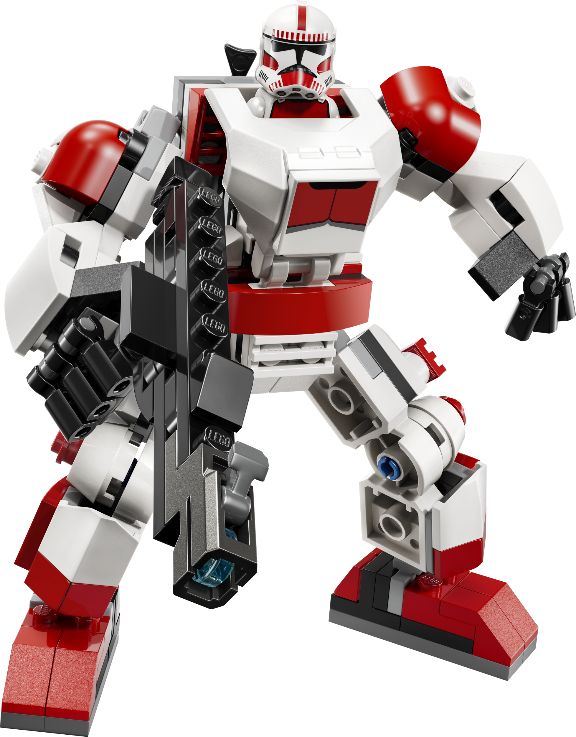 Pane Clone Shock Trooperi LEGO minifiguur roboti kokpitti ja kinnita roboti tagaosale kahuripüstol. Muuda selle käte ja jalgade asendit, et luua ägedaid lahingupoose. Aseta suur kahuripüstol selle kätesse ja aktiveeri nupsukahur. Tänu oma Clone Shock Trooperite iseloomulikes punastes ja valgetes värvides lahingrüüle näeb robot ka mängumissioonide vahel laste magamistubades äge välja.