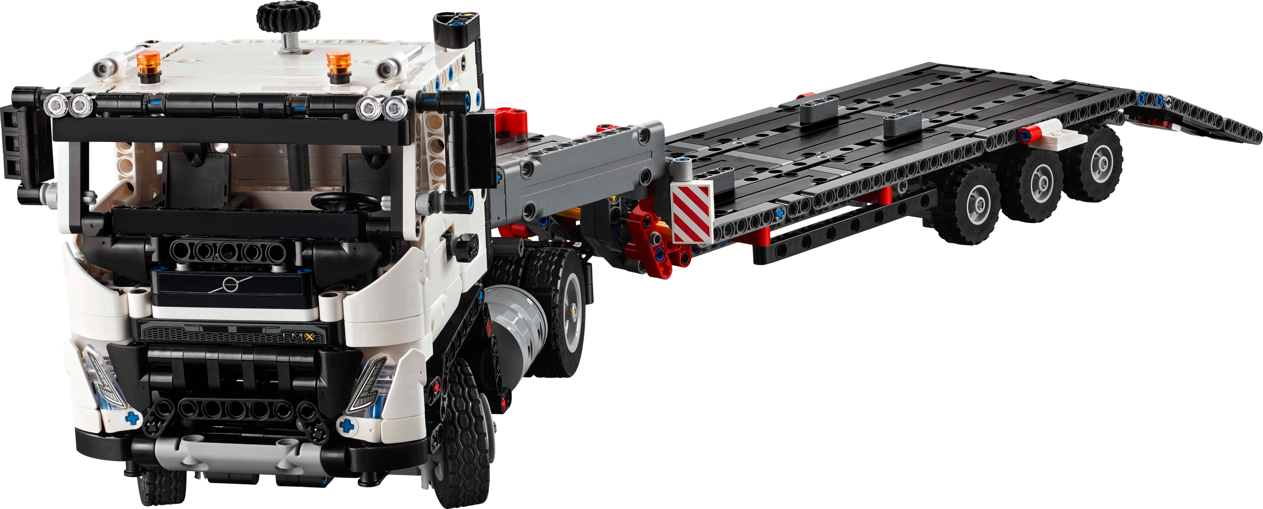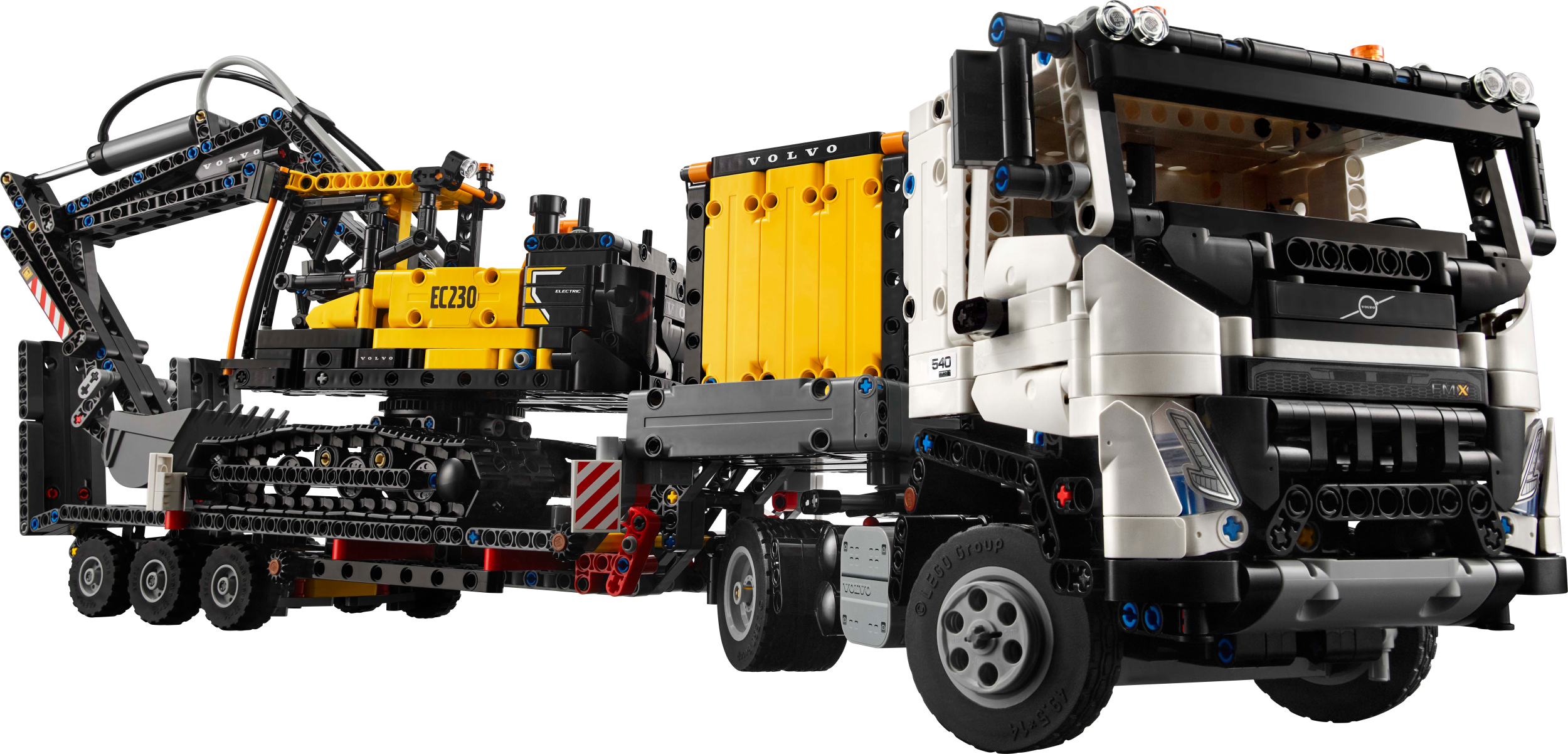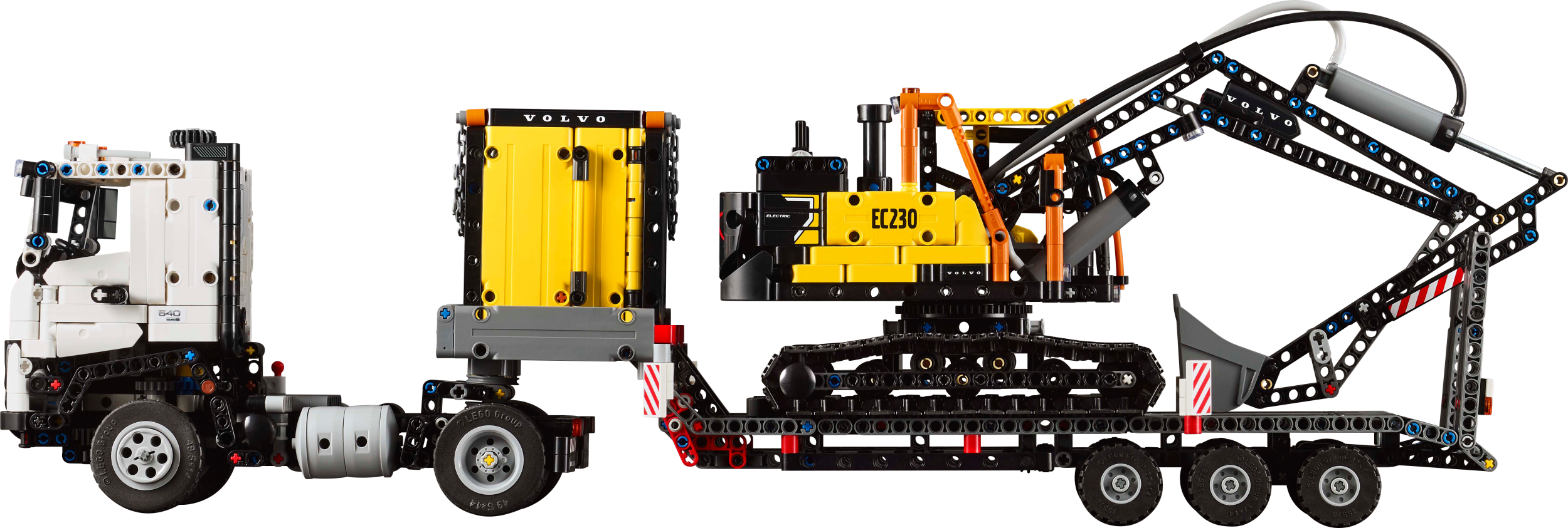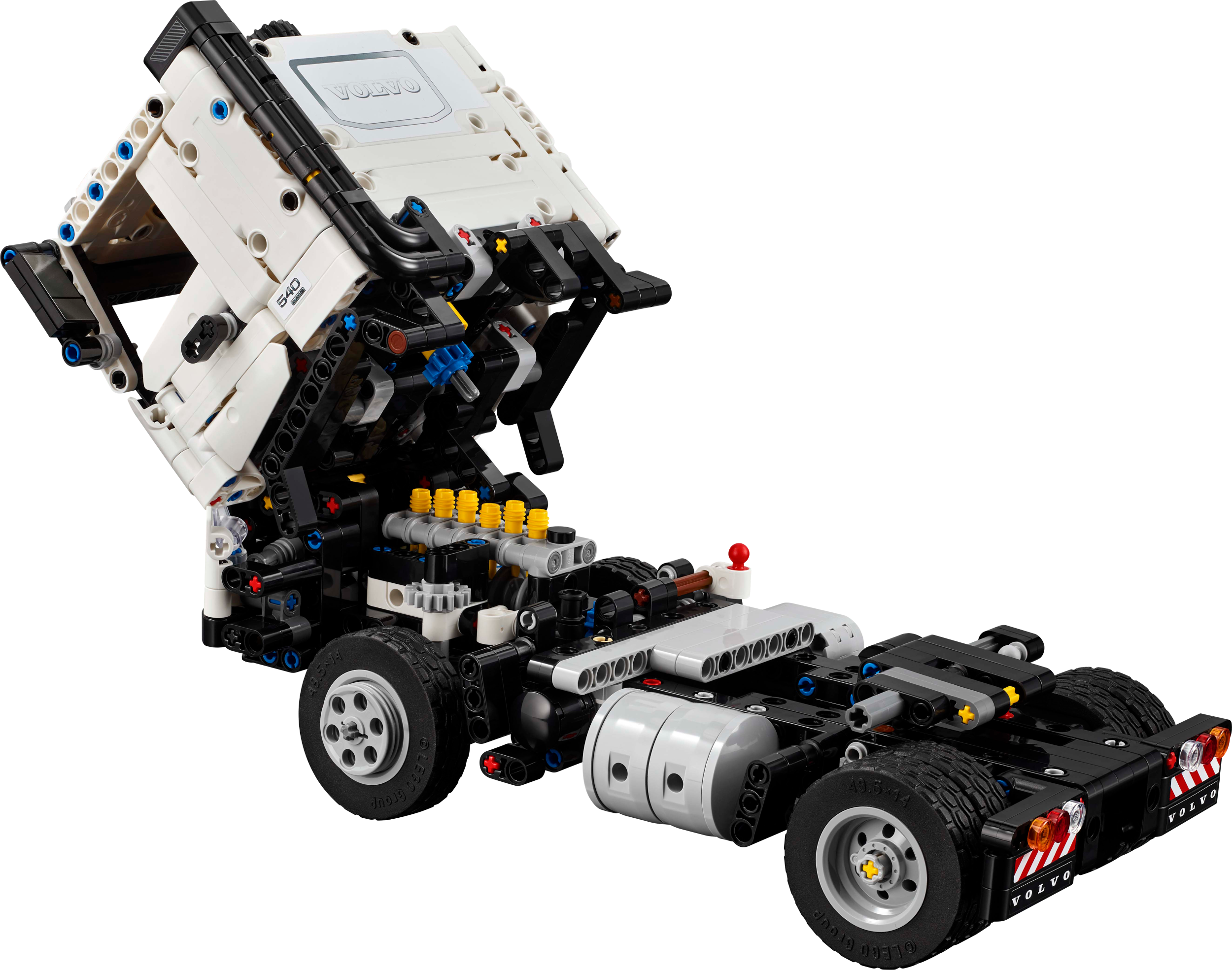 Noored ehitajad saavad avada LEGO Technicu veoki uksi ja kallutada operaatori kabiini, et näha selle 6-silindrilist liikuvat kolbmootorit. Seejärel saavad nad veoki oma kohale juhtida, haagise lahti võtta ja kaldtee alla klappida, et ekskavaator maha veeretada.