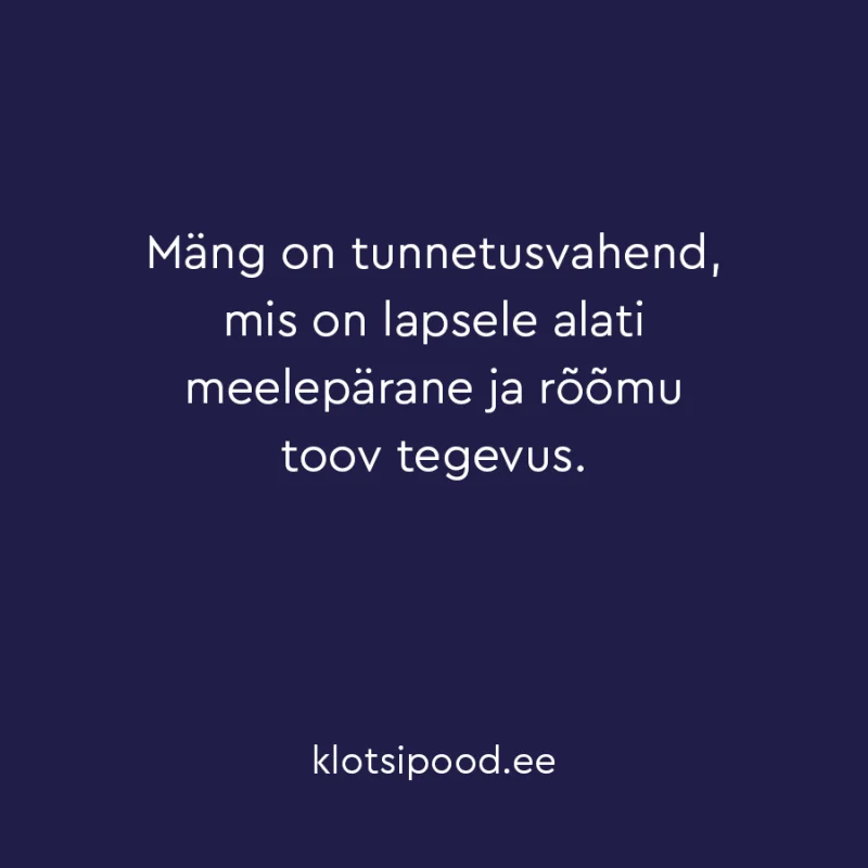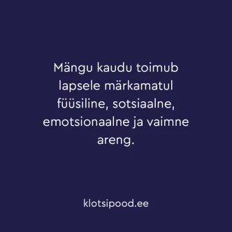 Mäng ei ole lapse jaoks lihtsalt ajaviide – see on tema loomulik viis maailma avastada ja mõista. Läbi mängu kogeb laps rõõmu, saab väljendada oma tundeid ning vabastada sisemisi pingeid. Just mängides areneb laps märkamatult nii füüsiliselt, sotsiaalselt, emotsionaalselt kui ka vaimselt.