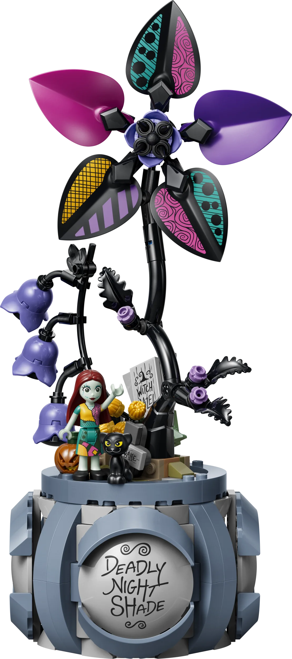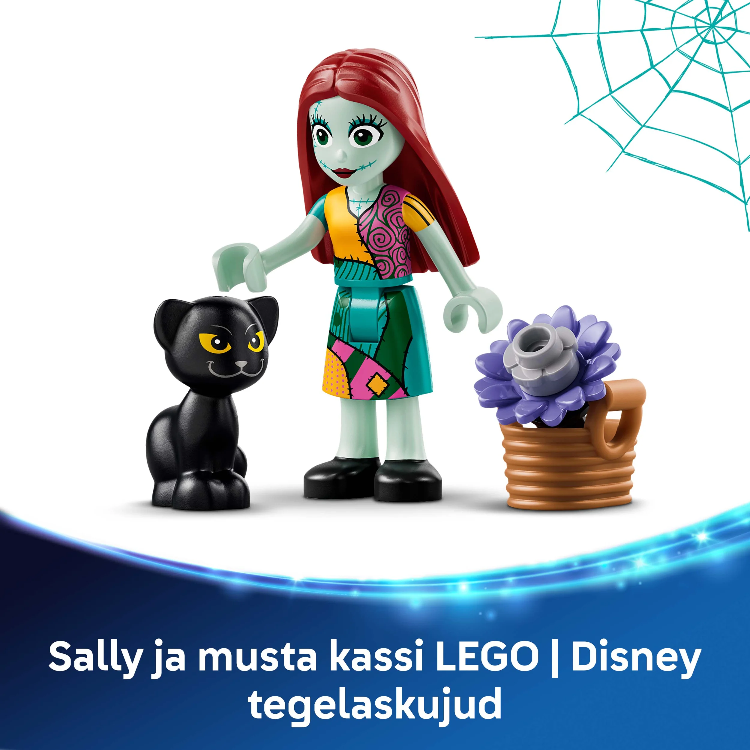 - HAHMOJA JA TARVIKKEITA – Rakennussetti sisältää Sallyn ja pienen mustan kissan LEGO® ǀ Disney hahmot sekä 3 kuvakoristetta ja kukan, jonka viidestä terälehdestä kolme sopii yhteen Sallyn asun kanssa