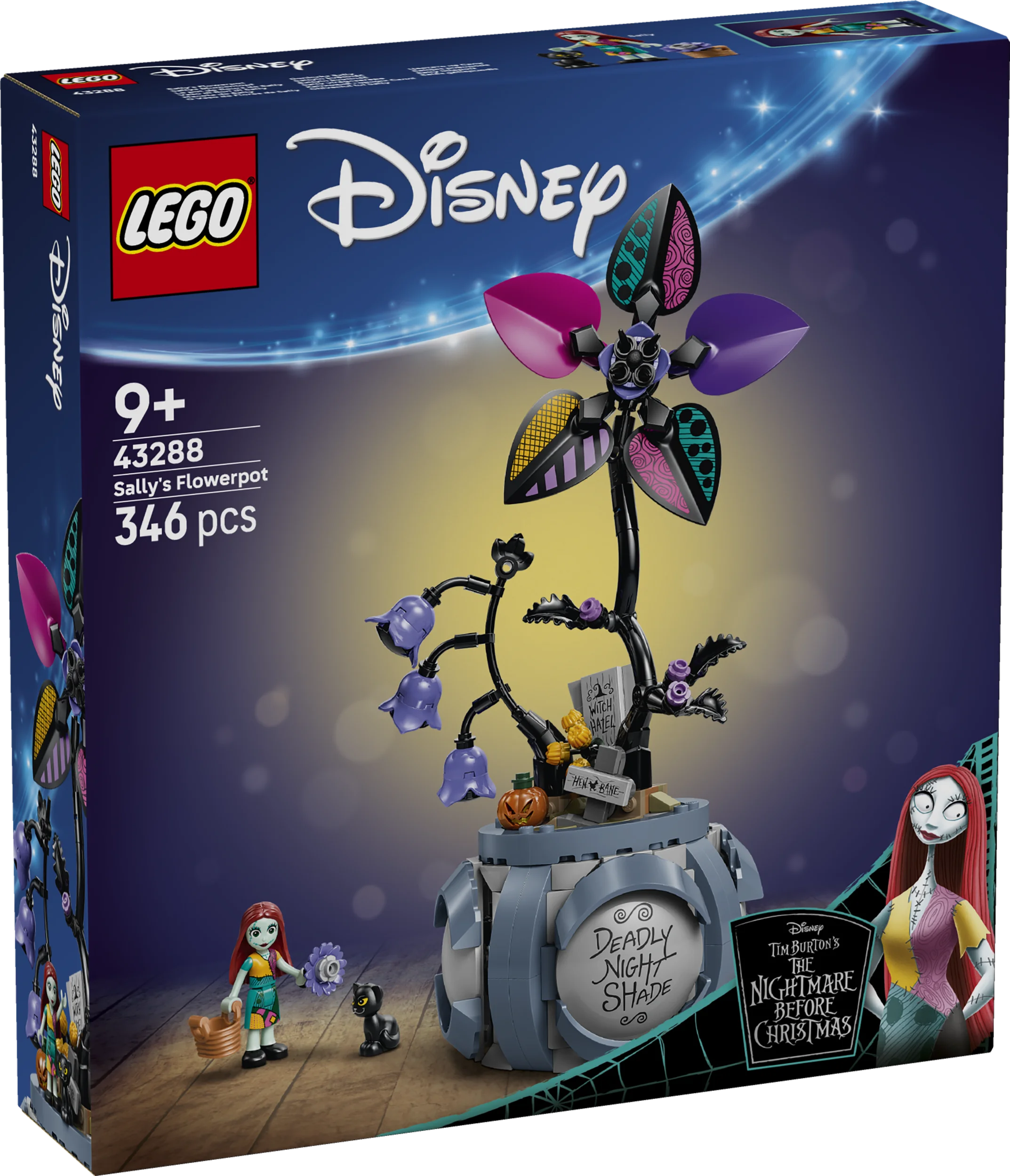 Yllätykset odottavat yli 9-vuotiaita lapsia tämän LEGO® ǀ Disney Sallyn kukkaruukku (43288) rakennussetin parissa. Kukka-aiheisen rakennussetin inspiraation lähteenä on Tim Burtonin Painajainen ennen joulua ‑elokuva. Mukana on kaksi leikkeihin houkuttelevaa LEGO ǀ Disney hahmoa: Sally ja pieni musta kissa. Setti sisältää myös kukkaruukun, jossa on 2 palikoista rakennettavaa kukkaa, kätkettyjä huoneita sekä tarrakuvia sisä‑ ja ulkopuolella. Sisäpuolelta löytyy myös kori, noidankattila, rakennettava pöytä ja paljon muuta. Hahmot voi säilyttää rakennelman sisällä leikkihetkien välissä.