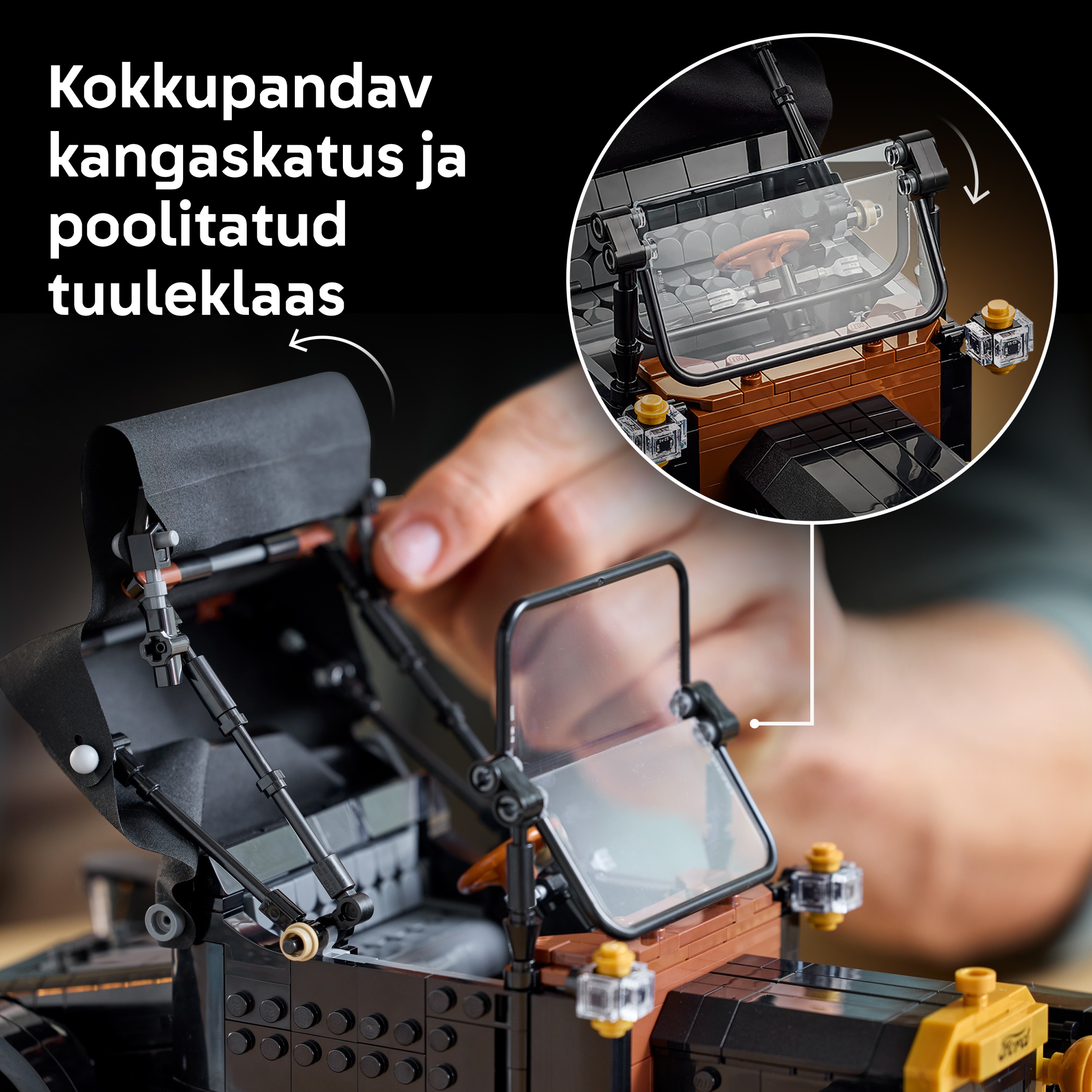 Juhlista autoilun historiaa rakentamalla LEGO® Icons Ford Model T (11376). Aikuisille tarkoitetussa 1910-luvun auton pienoismallissa on taakse taittuva kangaskatto, alas taittuva kaksiosainen tuulilasi, avattava matkustajan ovi, avattava takaluukku ja erittäin yksityiskohtainen ohjaamo sekä toimiva ohjaus. Istuimen alta paljastuu polttoainesäiliö. Kun konepellin paneelit nostetaan molemmilta puolilta, moottori tulee näkyviin, ja tuuletin pyörii kampea käännettäessä. Vintageauto mustine koreineen, kultaisine yksityiskohtineen, isoine vanteineen ja kapeine valkoisine kumirenkaineen on tyylikäs koriste kotiin tai työpaikalle.