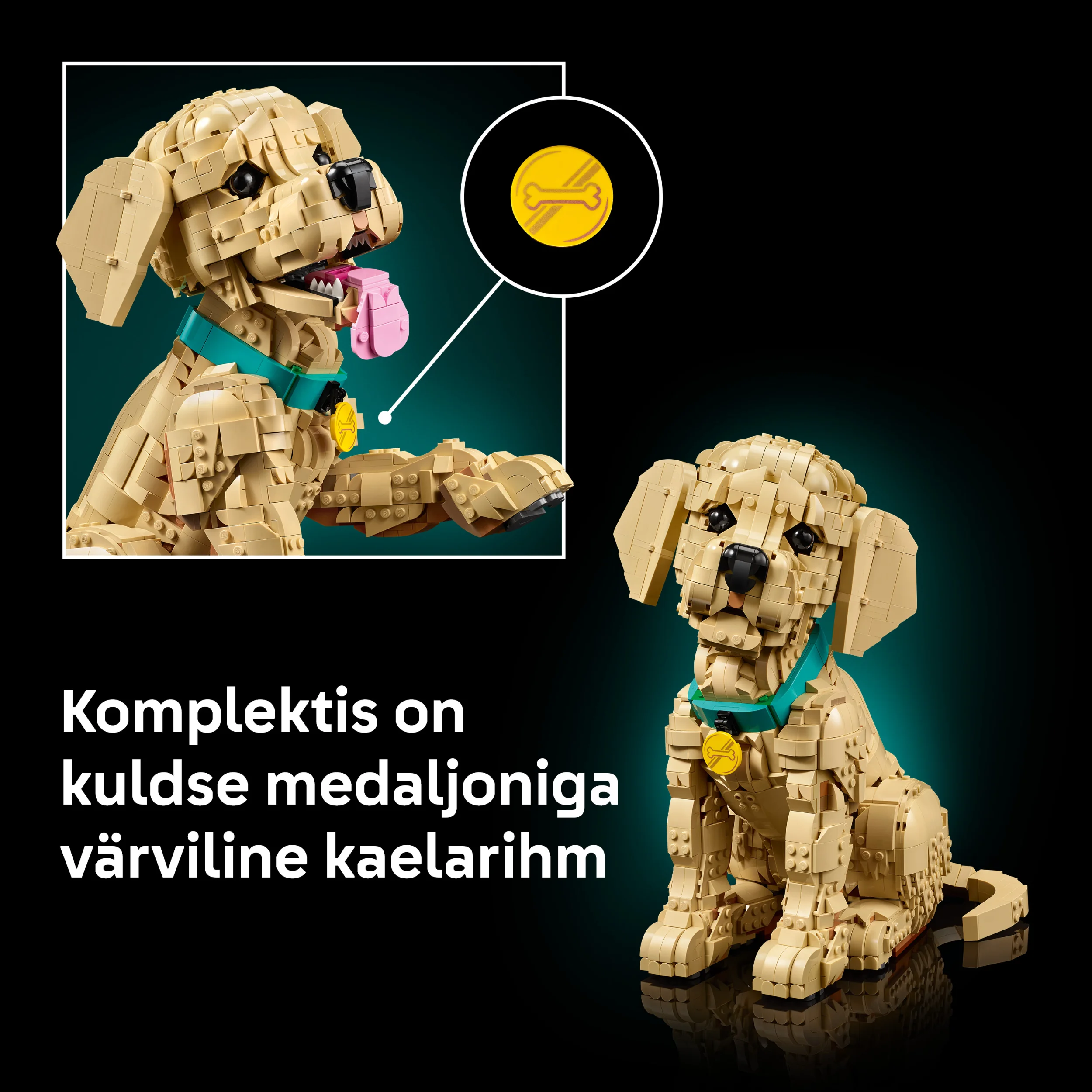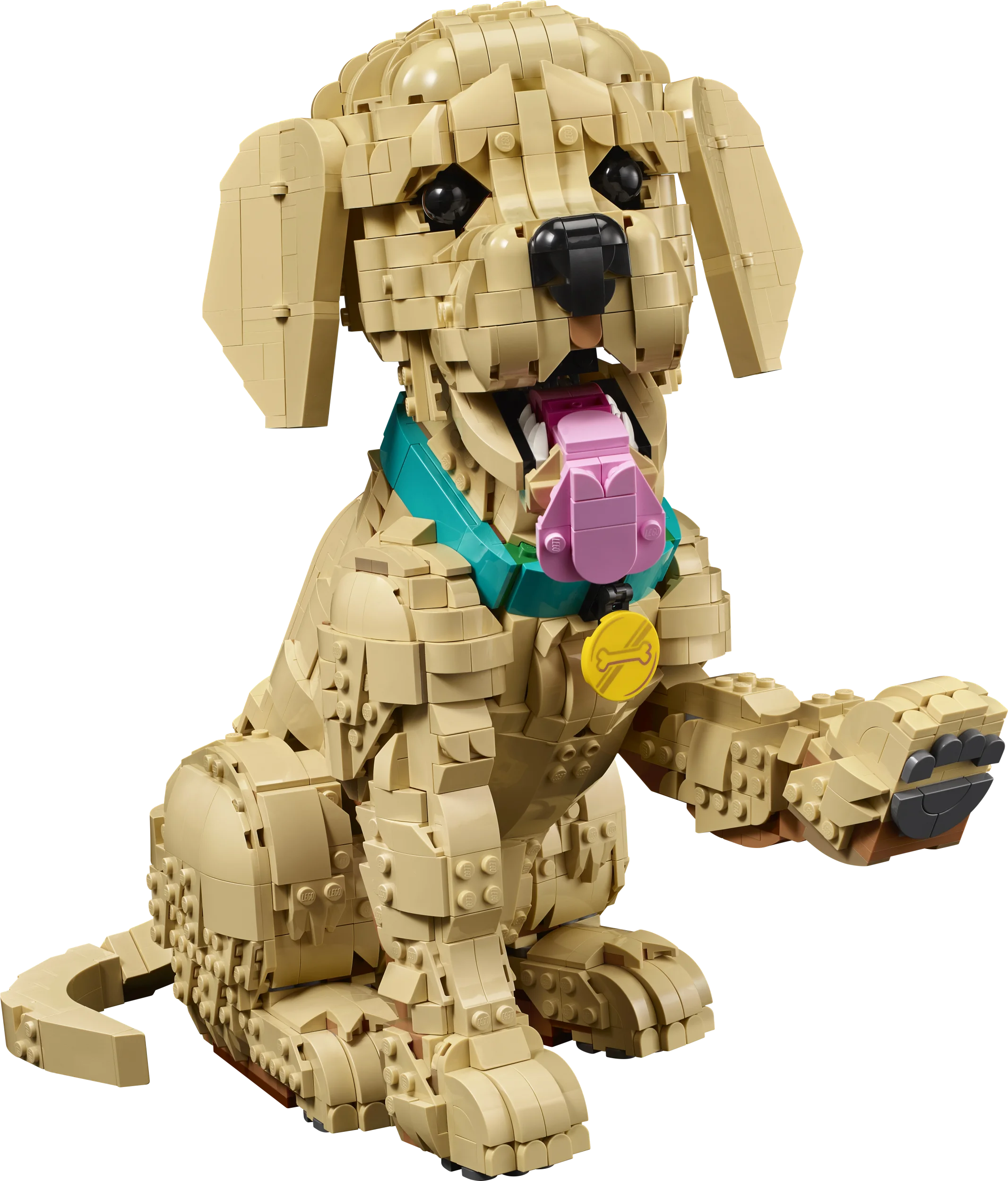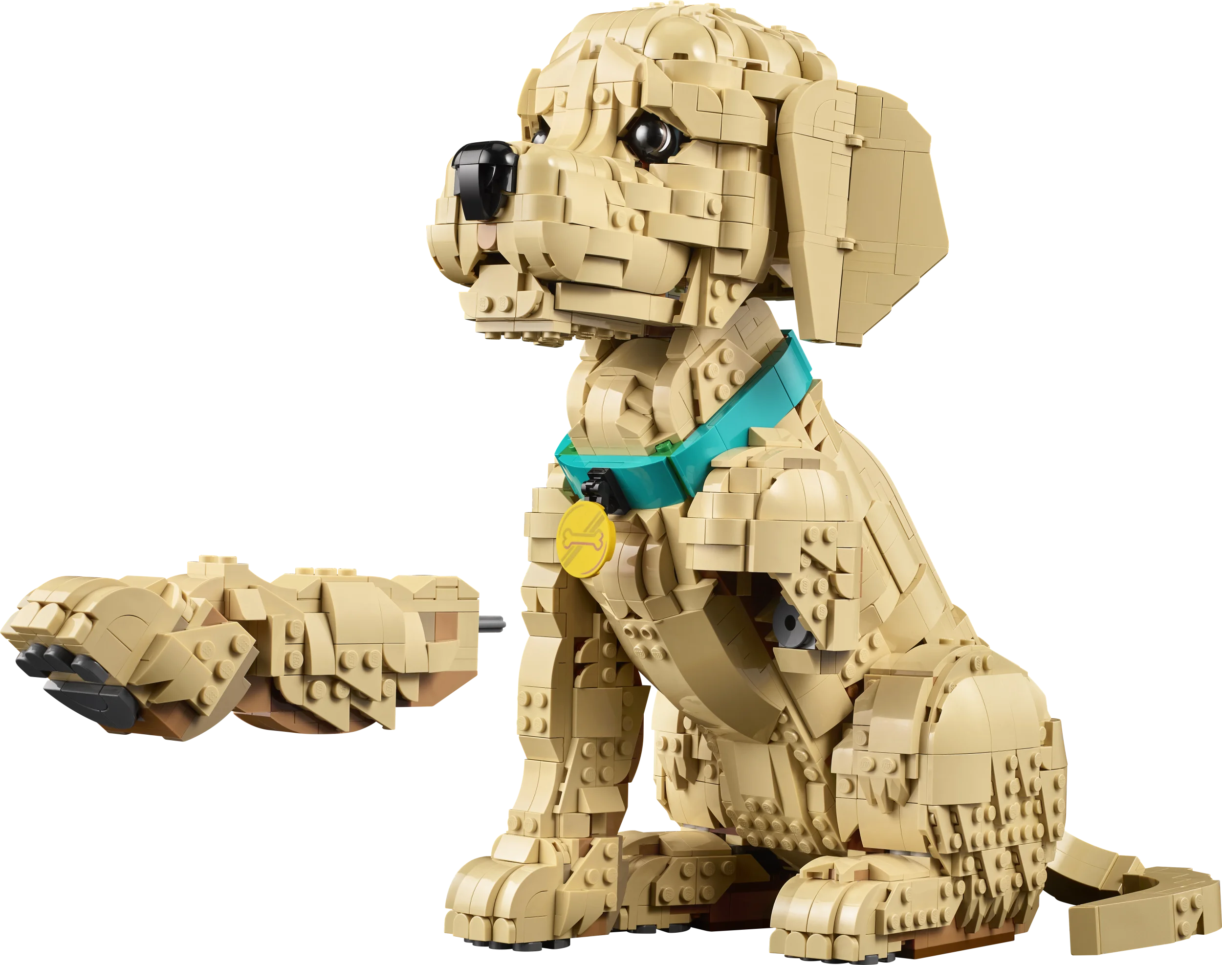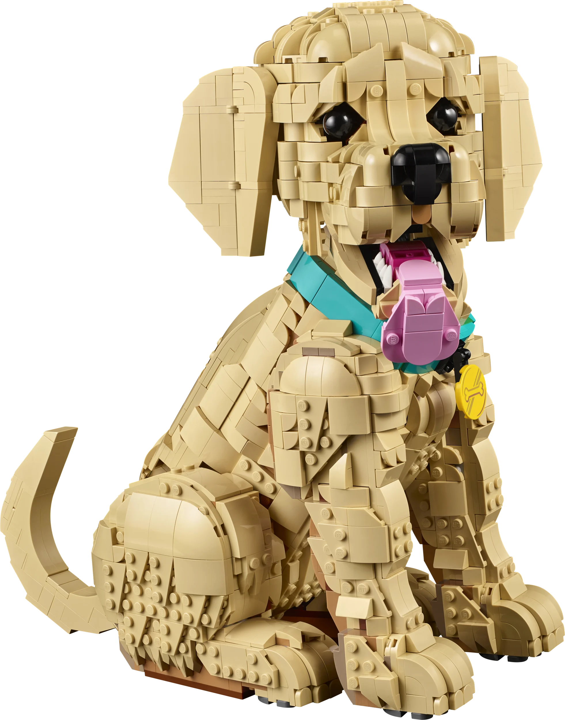 - TAIVUTELTAVA HAHMO – Rakenna yksityiskohtainen LEGO® pienoismalli kultaisen noutajan pennusta, jolla on värikäs kaulapanta ja riipus ja jonka voi asetella eri asentoihin