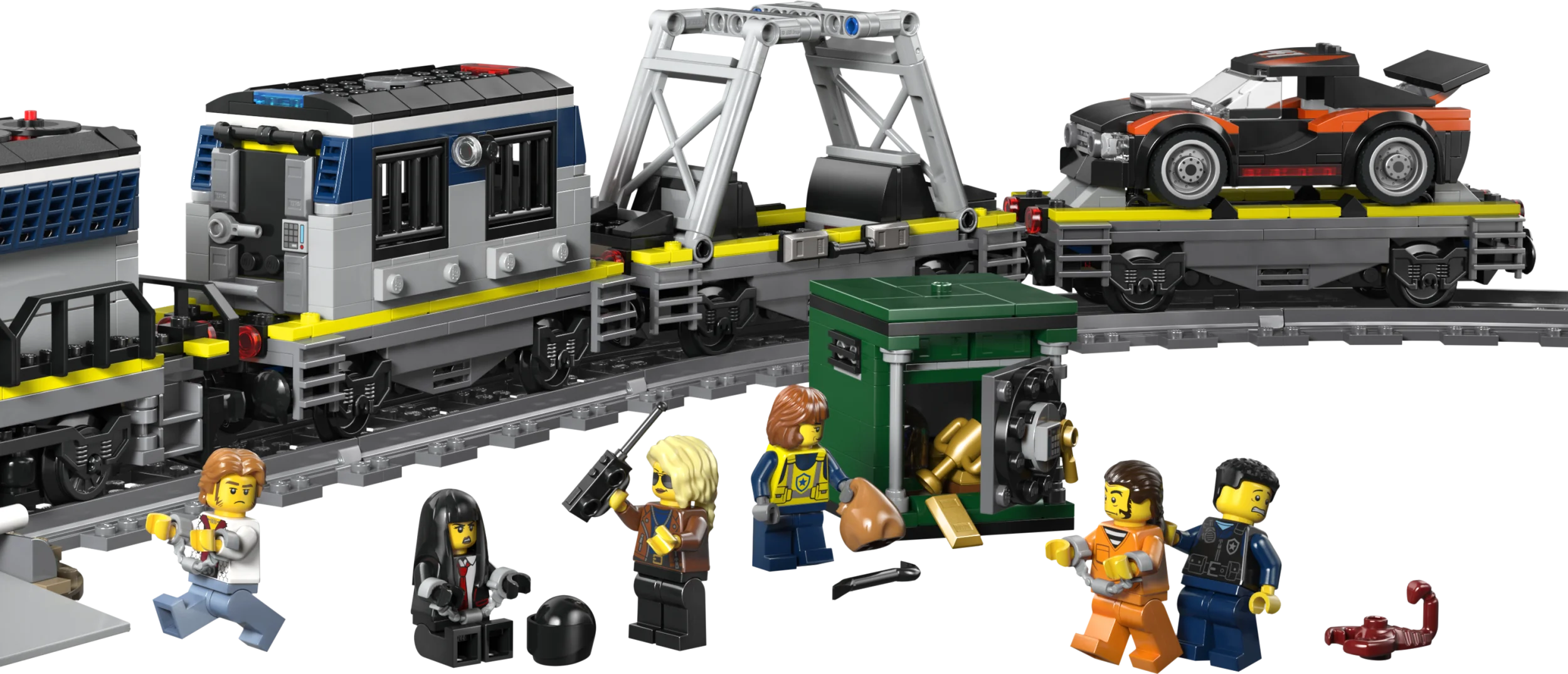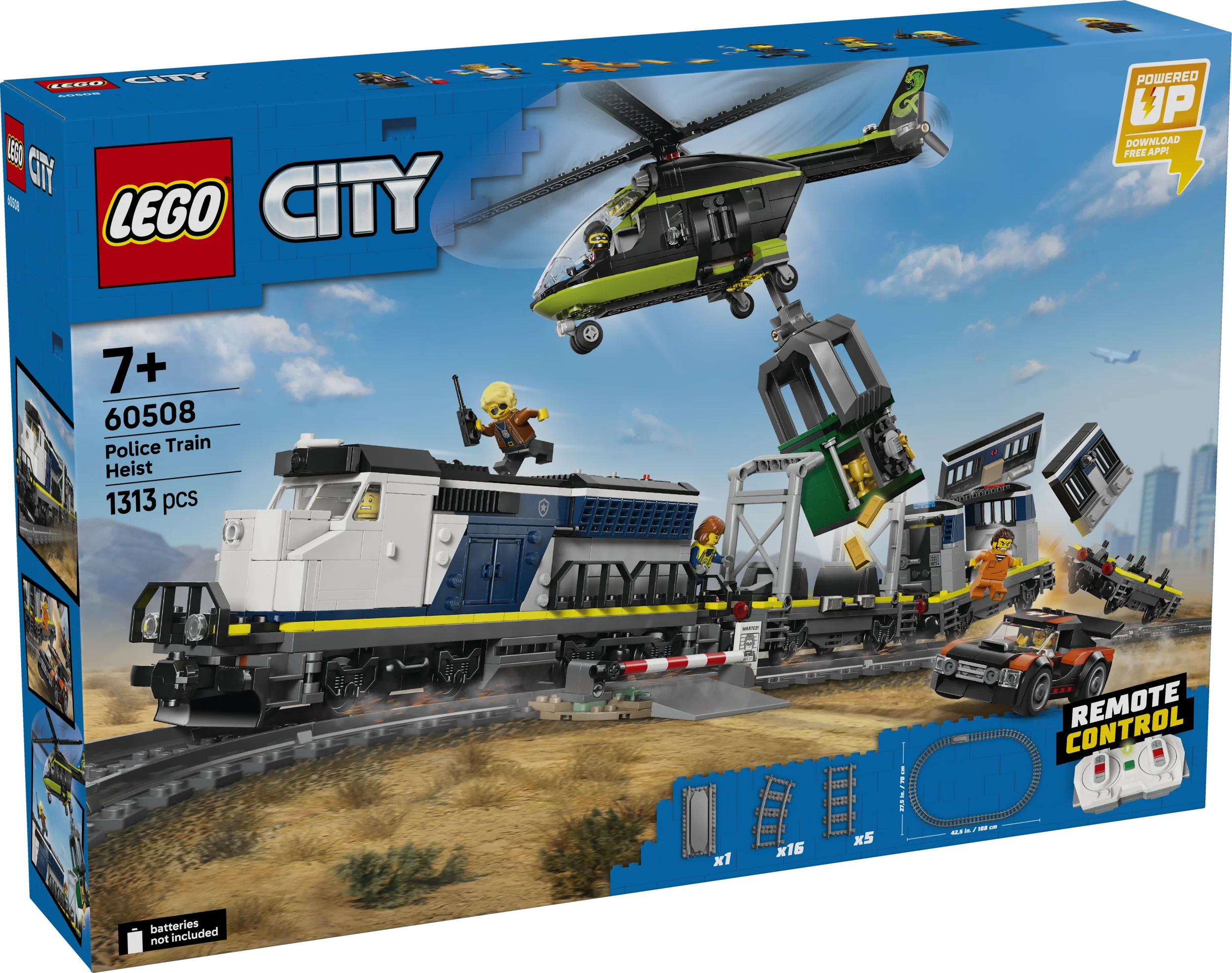 - POLIISIJUNASETTI – LEGO® City Poliisijunan ryöstö rakennussettiin (60508) sisältyy moottoroitu juna, helikopteri, ralliauto, raiteita ja 6 minihahmoa mielikuvitusleikkejä siivittämään