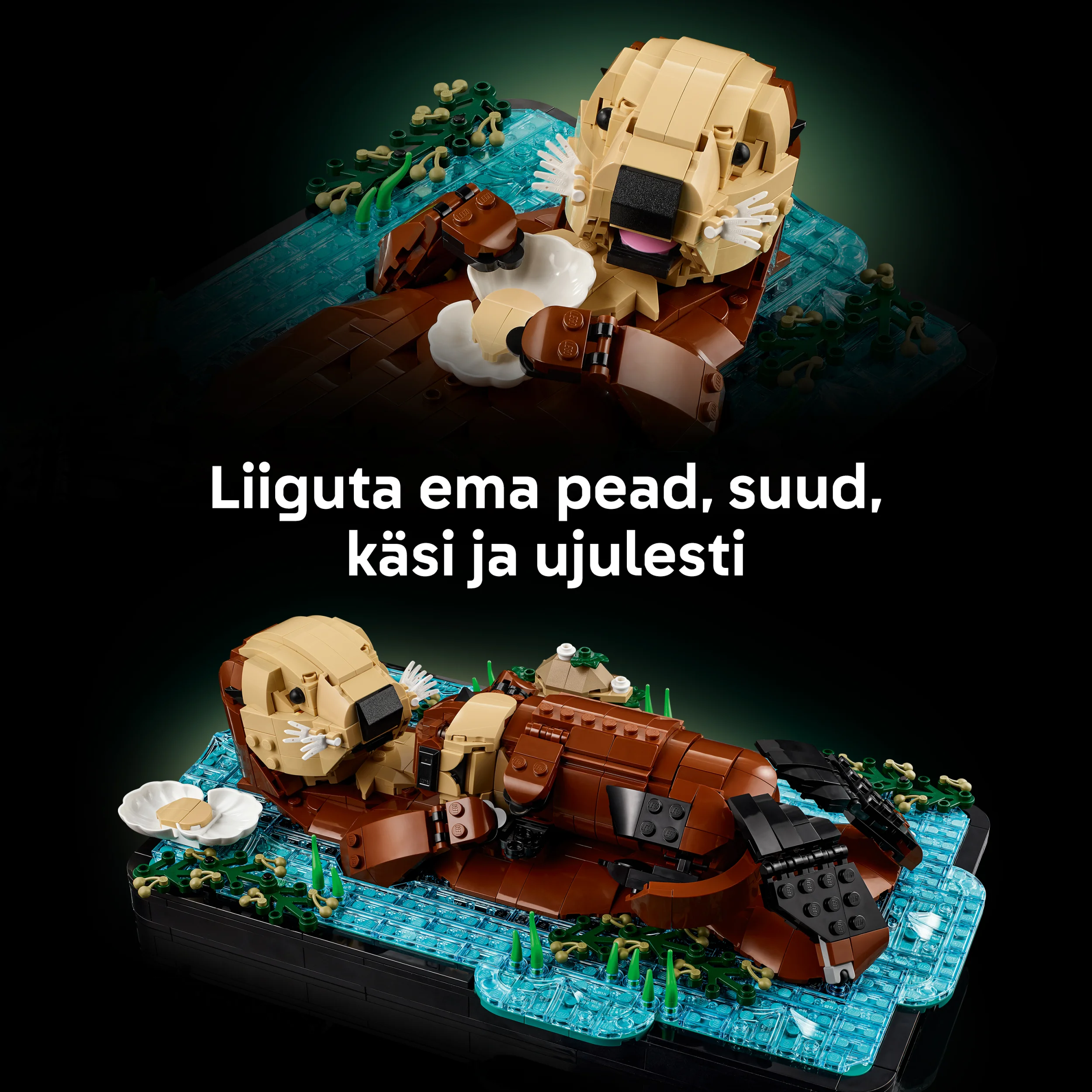 - 2 MERIELÄINTÄ – Rakenna palikoista yksityiskohtainen vedessä kelluvan saukkoemon ja poikasen LEGO® pienoismalli