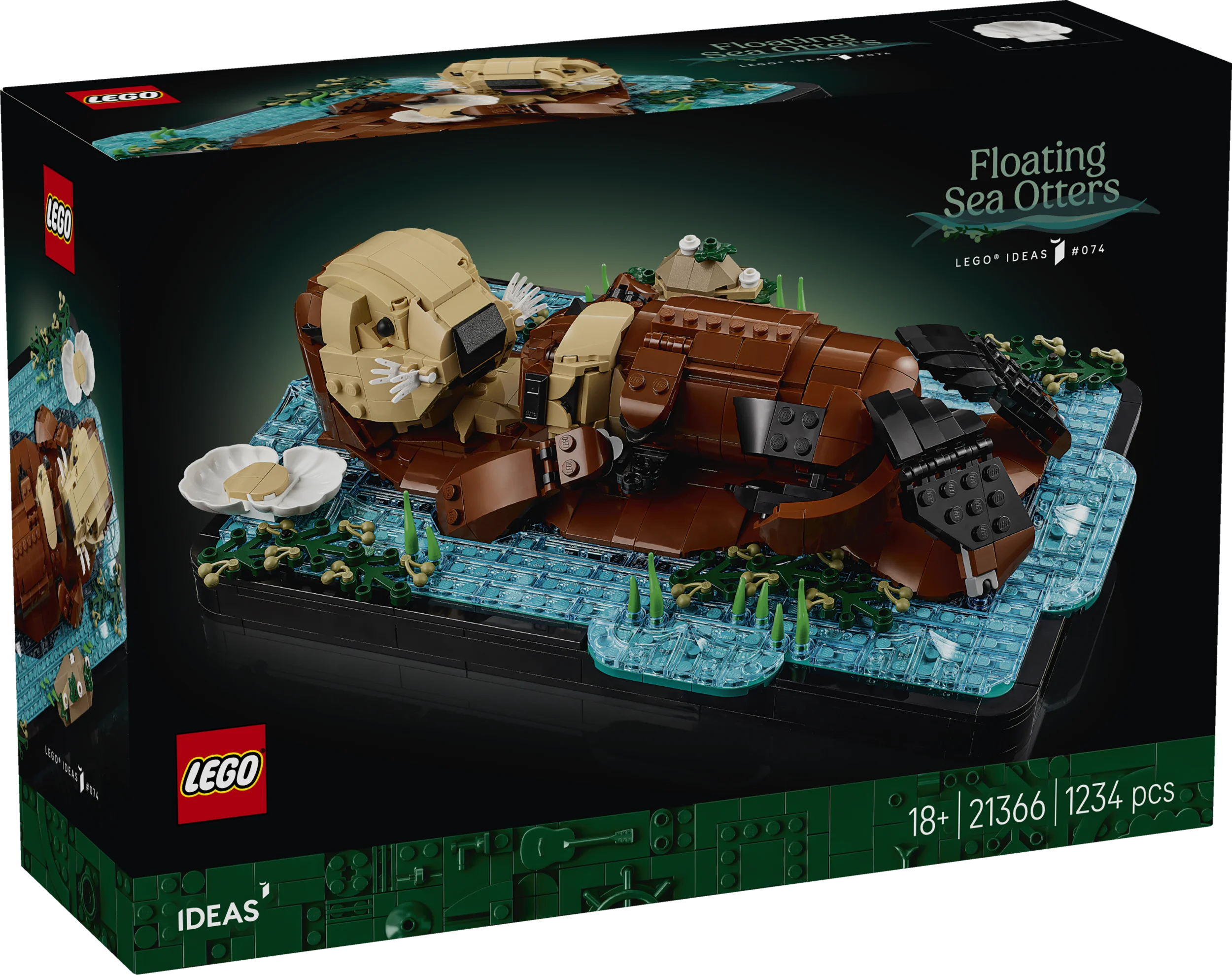 Aikuisille suunnatusta LEGO® Ideas Kelluvat merisaukot (21366) setistä loihdit soman koristeen kotiin. Rakenna palikoista pienoismalli, joka esittää vedessä kelluvaa saukkoemoa ja emon vatsan päällä köllöttelevää poikasta. Saukkoemon pään, suun, jalat ja räpylät voi asetella eri asentoihin. Merieläinaiheista koristetta voi muunnella rakentamalla saukkoemon seuraksi simpukka.