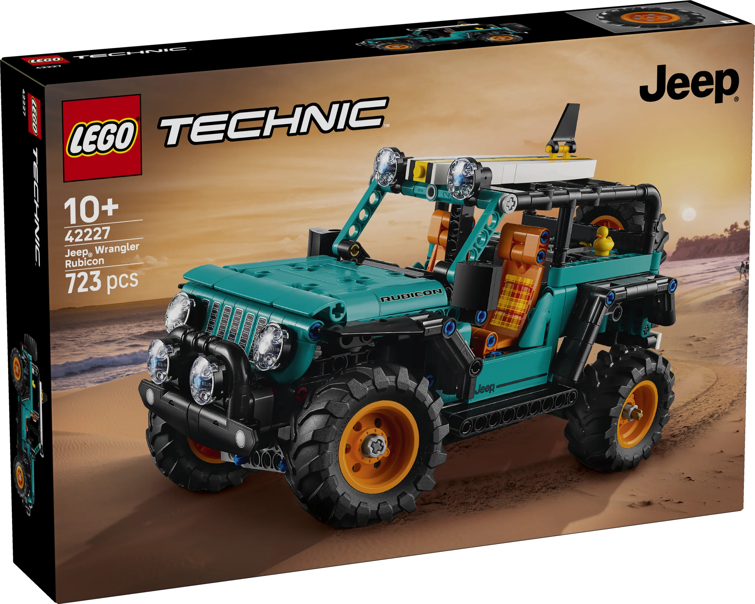 LEGO® Technic Jeep® Wrangler Rubicon ‑maasturi (42227) kuljettaa 10 vuotta täyttäneet lapset tien päälle. Autossa on runsaasti todenmukaisia yksityiskohtia tutkittavaksi, mukaan lukien ohjaus, jousitus ja V6-moottori.