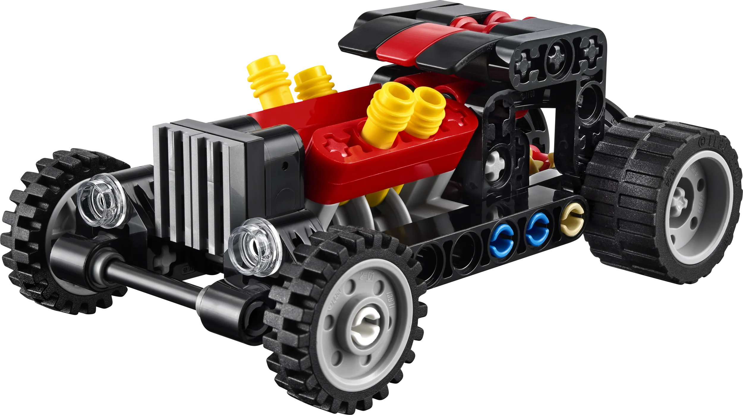 Ilahduta ajoneuvofaneja LEGO® Technic hot rod ‑autolla. Menopelissä on liikkuvat männät, muhkeat renkaat ja upea väritys kuten mahtavissa hot rod ‑autoissa aina.