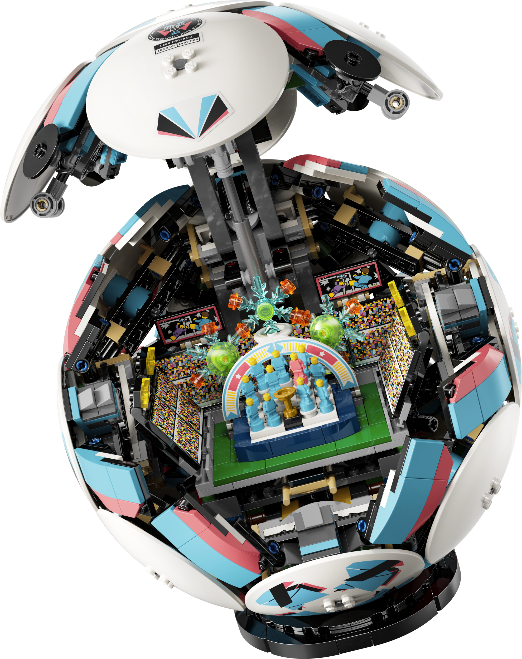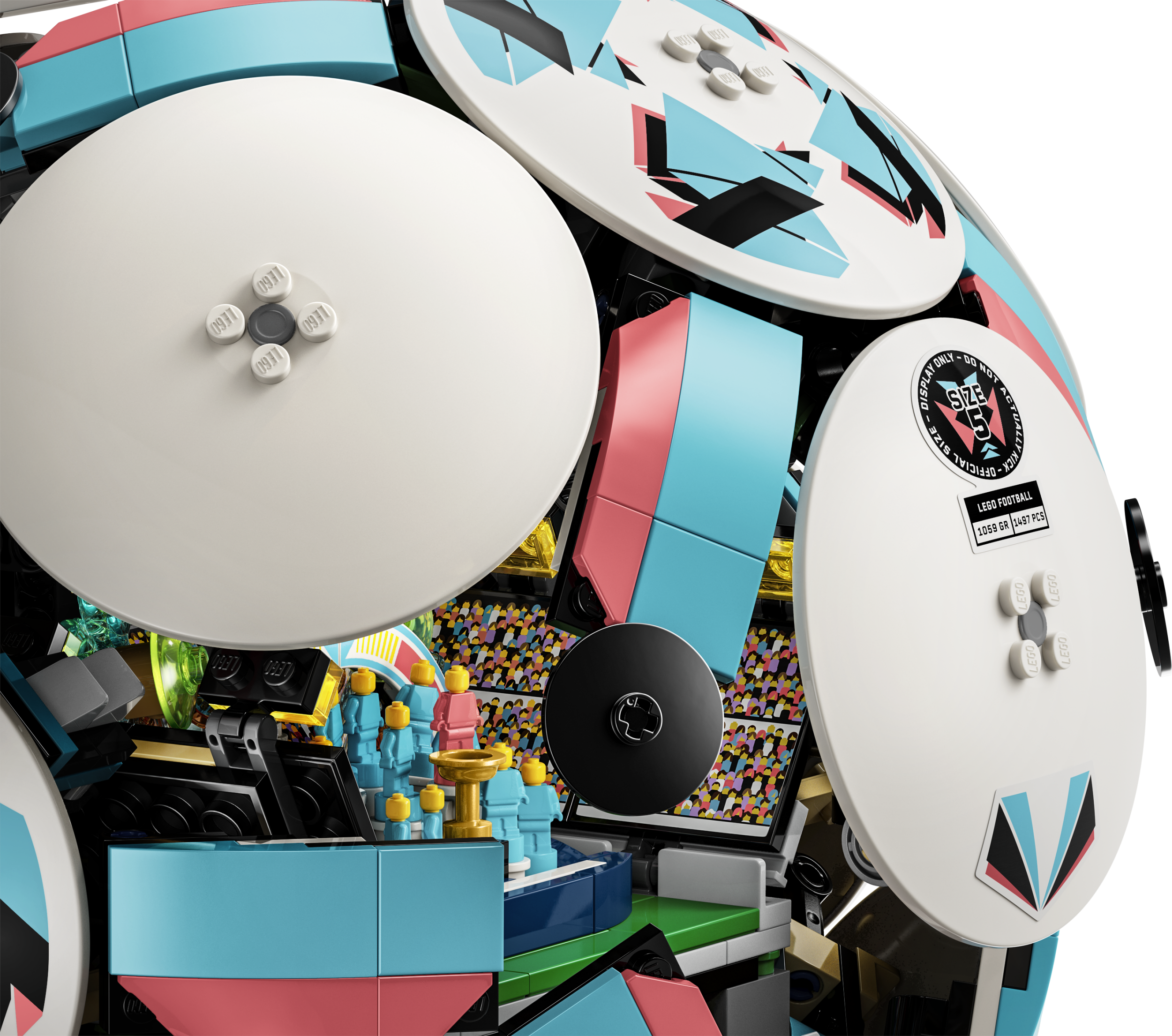 Kolekcionējamajā komplektā ir LEGO Technic elementi, kas palīdz izveidot apaļu formu, un bumbas ārpusē ir 6 stilīgi dekoratīvie diski, savukārt iekšpusē ir aizraujošs mini stadions, kurā var atklāt svinību ainu. Bērni var nospiest pogu un vērot, kā futbolistu figūras svin uzvaru un tālumā plaukst salūts. Citas interesantas stadiona detaļas ietver nelielu zelta trofeju un lielus ekrānus.