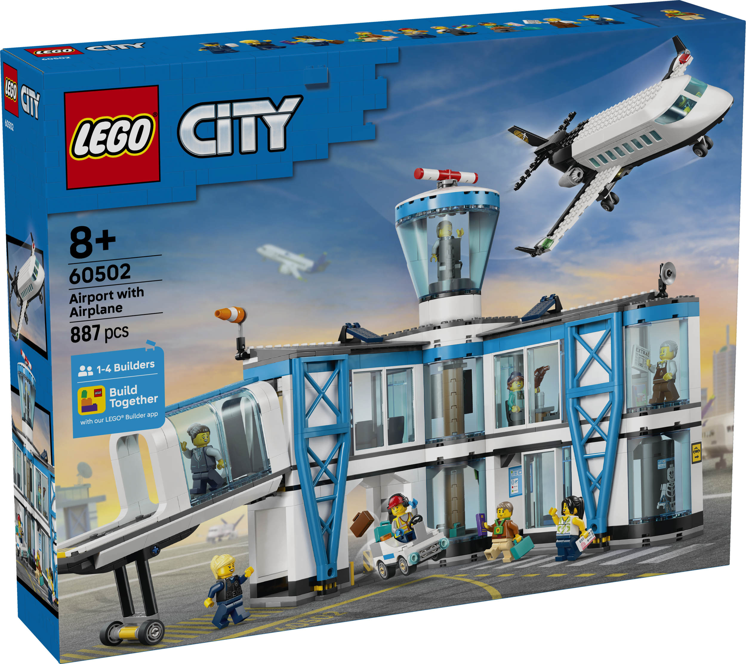 Rotaļu laiks sāksies ar būvēšanas komplektu LEGO® City Lidosta ar lidmašīnu (60502) bērniem no 8 gadu vecuma. Šim detalizētajam lidostas modelim ir daudz funkciju, lai izspēlētu dažādas situācijas. Bērni var skenēt bagāžu ar rotaļu skeneri, grozīt caurstaigājamo metāla detektoru, lai ieraudzītu rentgena staru skeletu, un mainīt detaļas izejošo lidojumu ekrānā ar četriem dažādiem galamērķiem. Komplektā ir arī aizraujoša rotaļu pasažieru lidmašīna, kam ir detalizēta kabīne un nolaižamas kāpnes, kā arī bagāžas vilcējs un pasažieru tiltiņš. Vien pievieno deviņas minifigūras un nododies tēlainām rotaļām stundām ilgi.