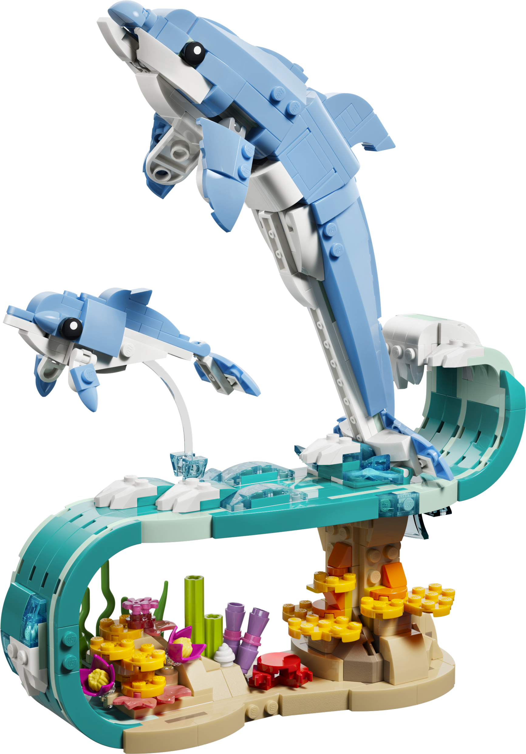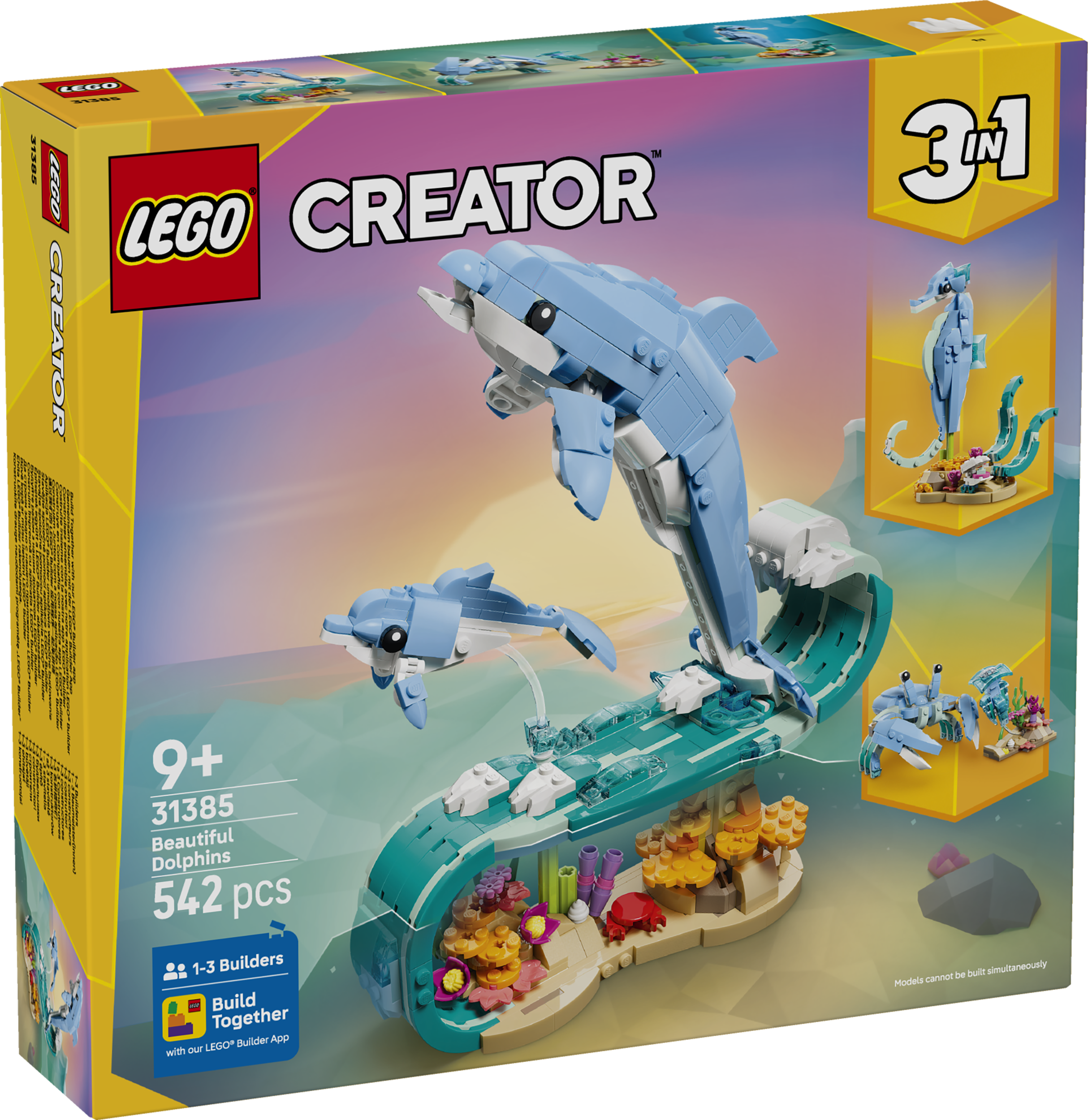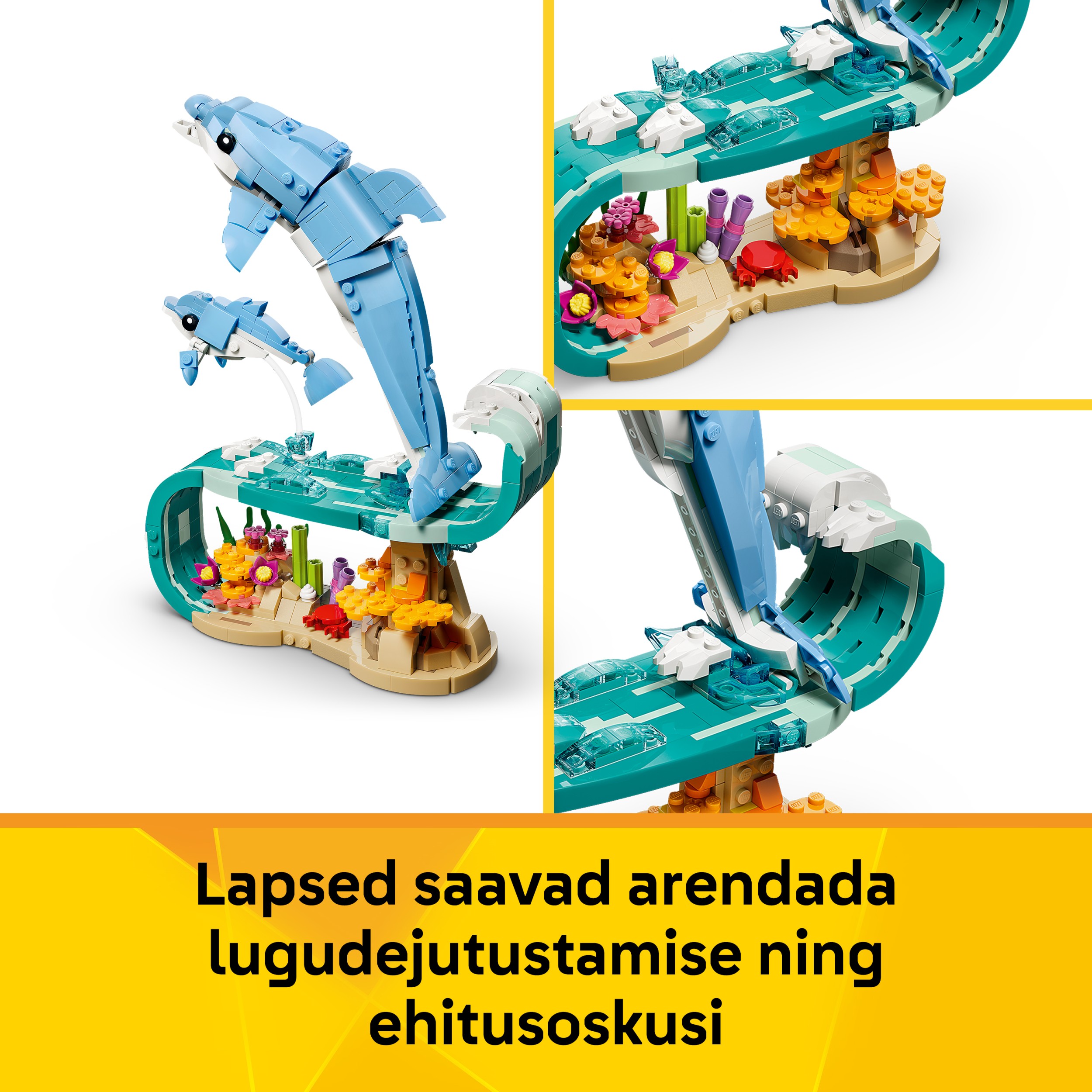 LEGO® Creator "Trīs vienā" Jūras dzīvnieki: Skaistie delfīni (31385) būvēšanas komplekts ļauj bērniem no 9 gadu vecuma izspēlēt aizraujošus stāstus. Šis jūras rotaļlietu komplekts ar jūras dzīvnieku figūrām zēniem un meitenēm piedāvā 3 dažādus būvēšanas variantus no vieniem un tiem pašiem klucīšiem.