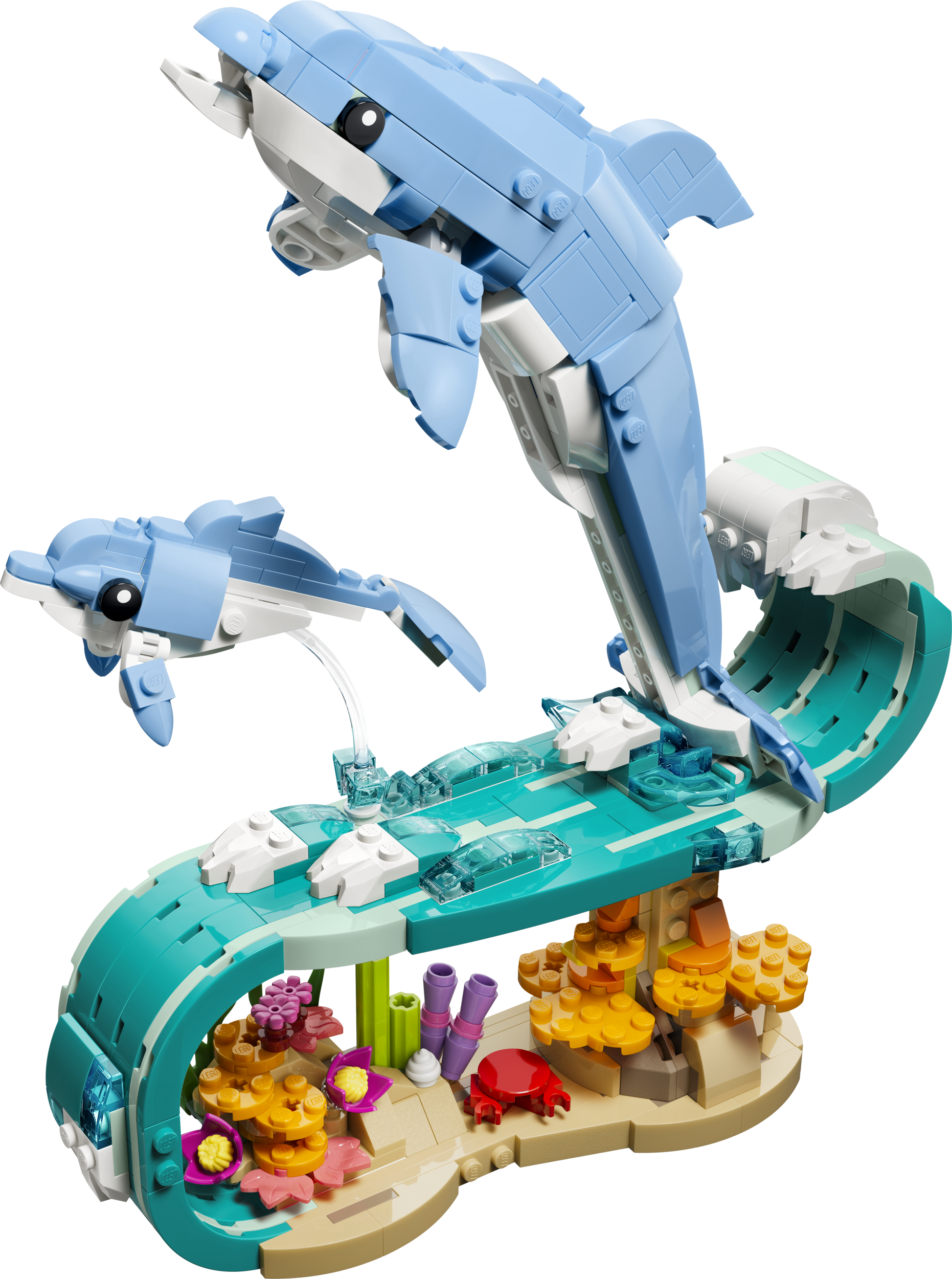 - BEZGALĪGAS IESPĒJAS LOMU SPĒLĒM. Bērni var veidot aizraujošus stāstus ar 3 skaistiem rotaļu dzīvniekiem (modeļus nevar uzbūvēt vienlaikus): 2 rotaļu delfīniem, kas turas uz viļņa, jūraszirdziņu vai rotaļu krabi