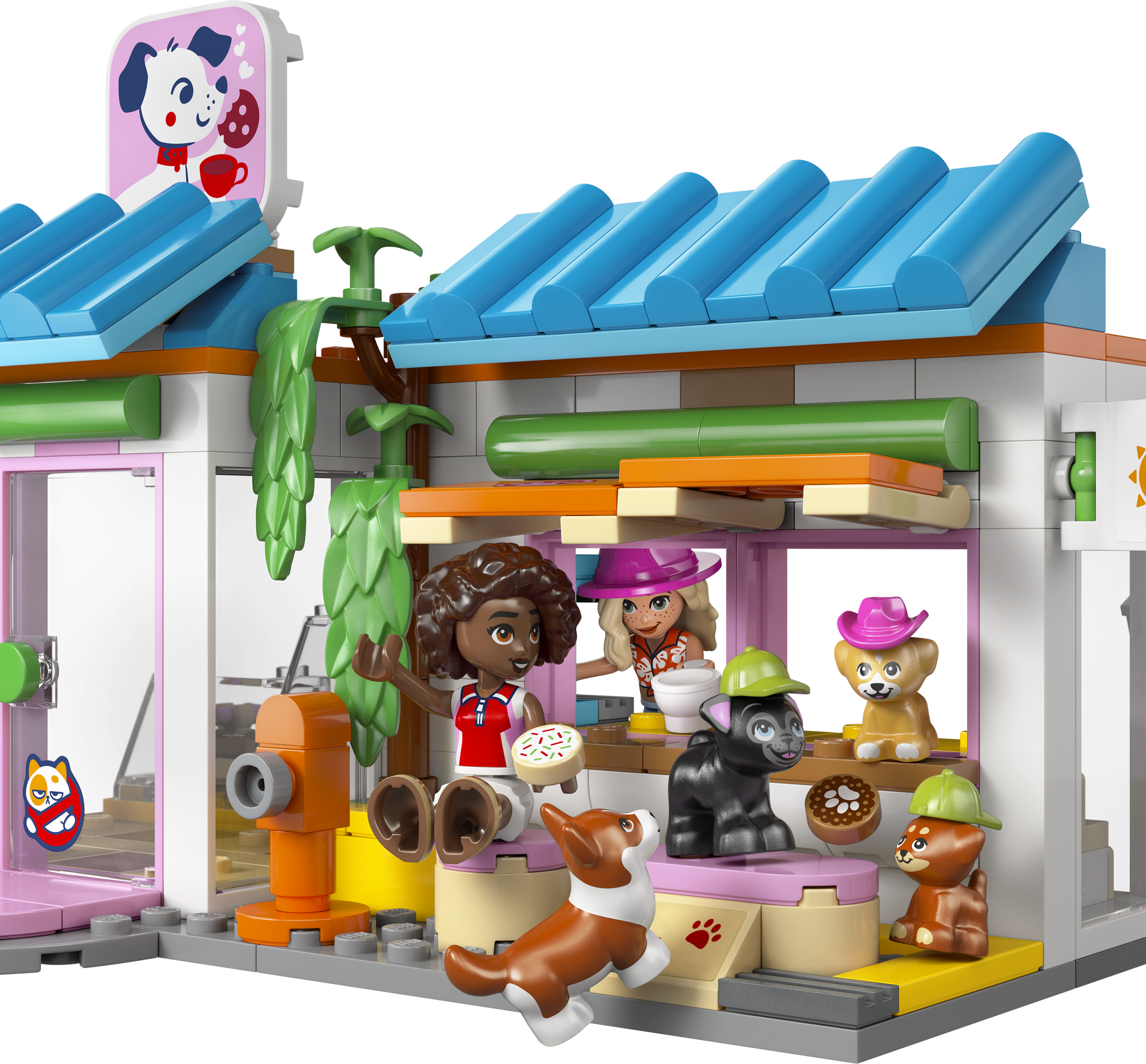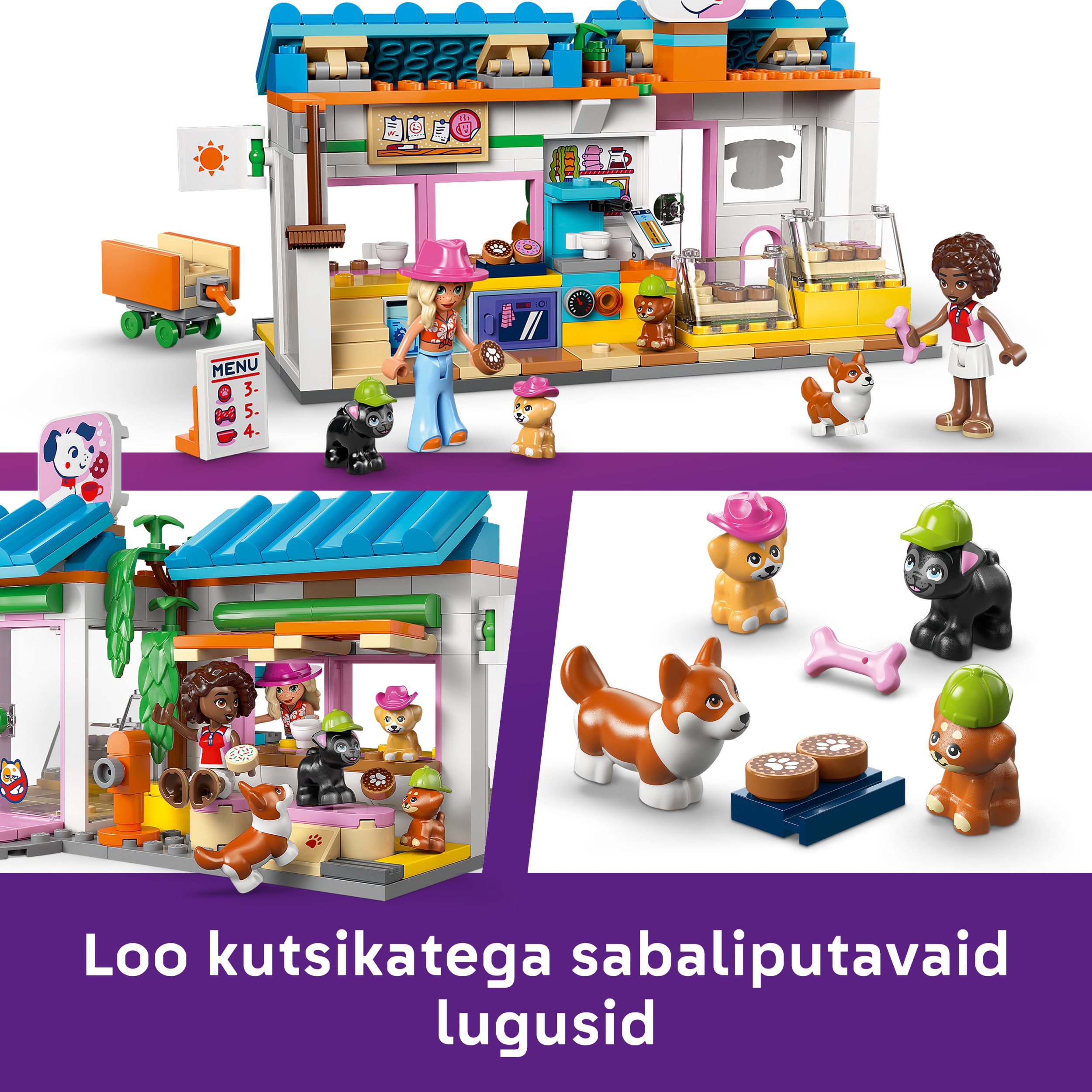 - IZSPĒLĒ STĀSTUS PAR MĀJDZĪVNIEKIEM. Radi asti luncinošus stāstus suņukiem un to saimniekiem LEGO® Friends Suņu gardumu ceptuvē (42677), kur ir cepeškrāsns, kafijas automāts, ledusskapis, sēdvietas un citas lietas