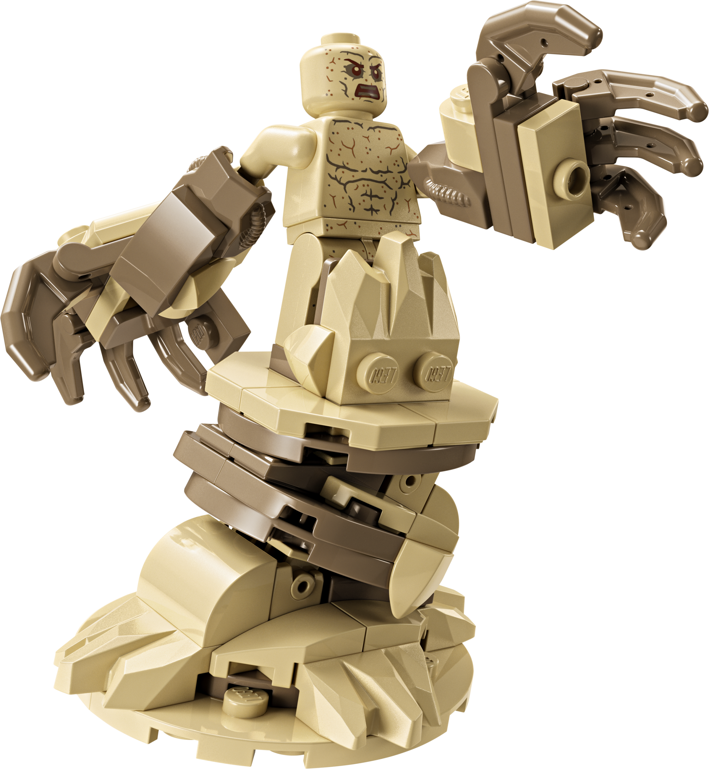 - 3 LEGO® ǀ MARVEL MINIFIGŪRAS. Būvēšanas komplektā ir 3 minifigūras, kas cīnās būvlaukumā: Zirnekļcilvēks, Venom ar taustekļiem un Sandman ar pamatni, kas būvēta no klucīšiem, un superizmēra roku