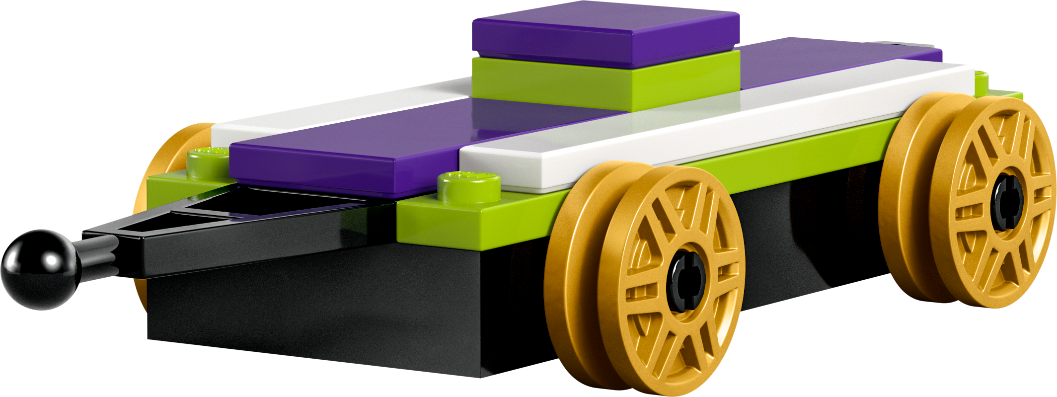 - Особенности и функции для игры — к паровозу LEGO® ǀ Disney прицепляются две платформы с качелями и звездолетом с открывающейся кабиной, а у машины сзади есть место для ракеты.