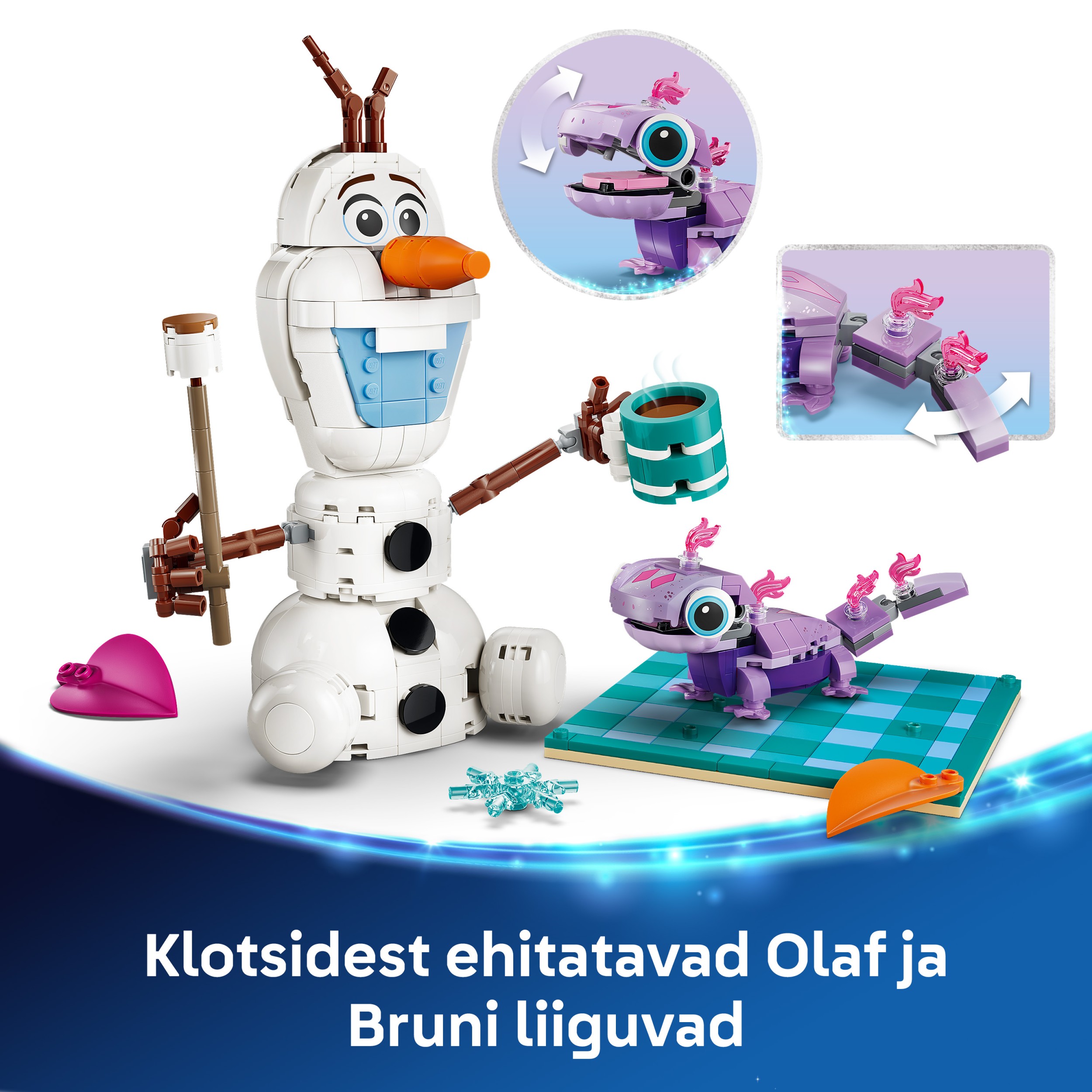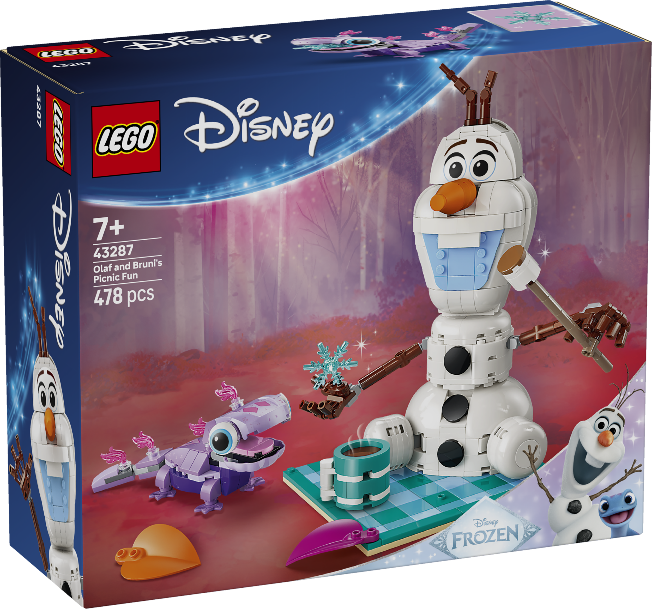 - СНЕГОВИК LEGO® ДЛЯ СБОРКИ — в этом увлекательном наборе для строительства снеговика «Веселый пикник Олафа и Бруни» (43287) представлены персонажи LEGO ǀ Disney Frozen Олаф и Бруни, красочное одеяло для пикника и многое другое.